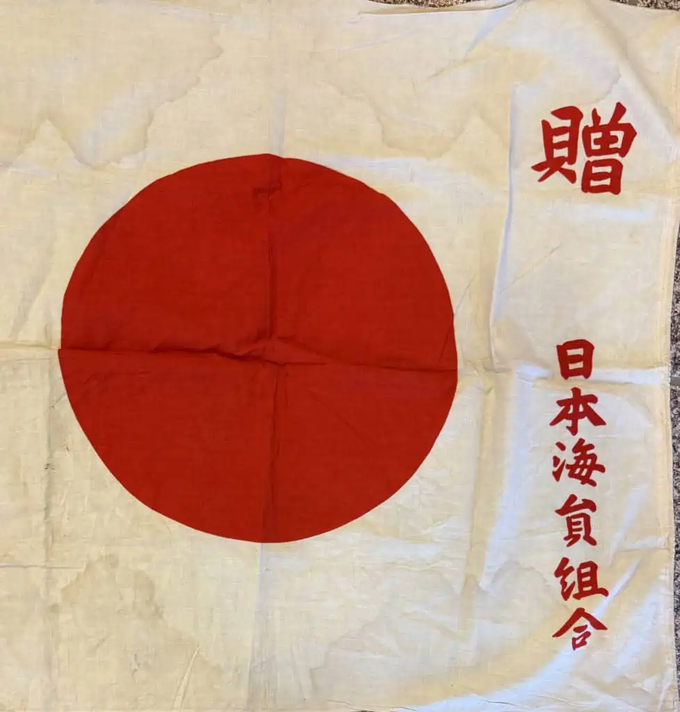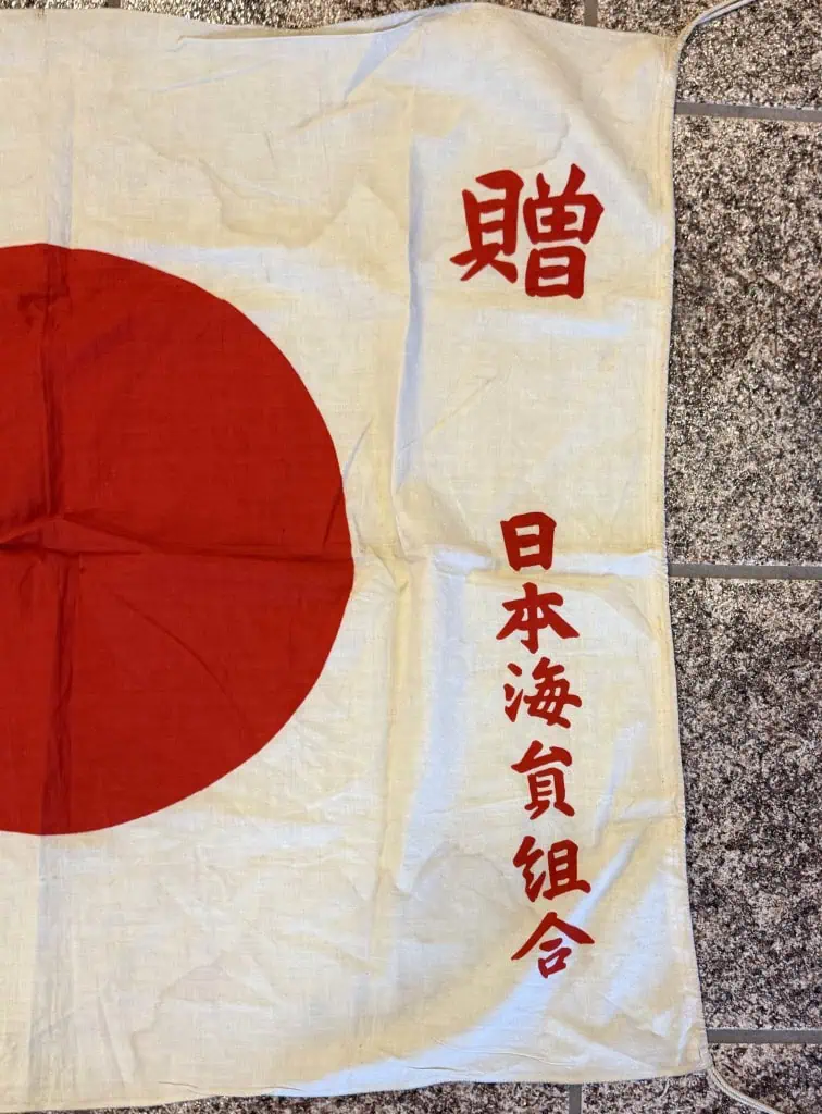 Original WWII Japanese NATIONAL FLAG With RARE Screened Kanji Brought Home By A U.S. Veteran Certified