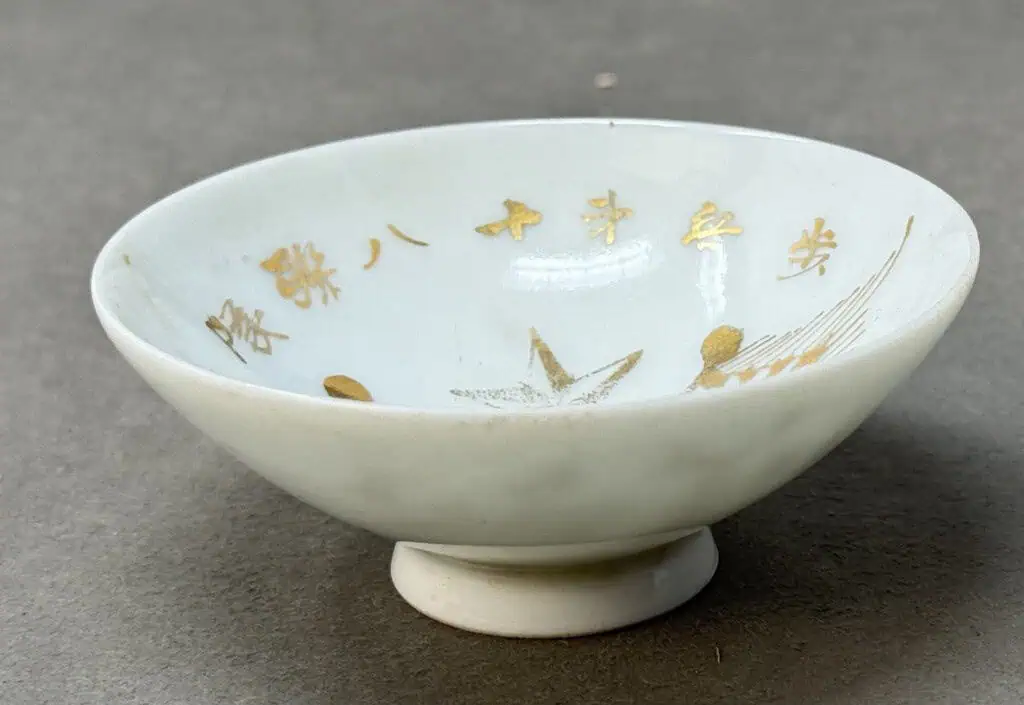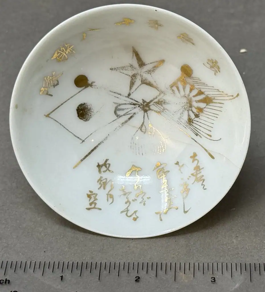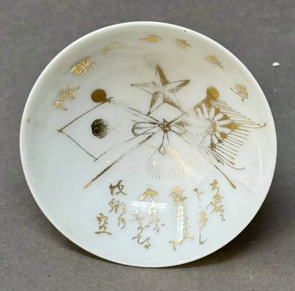 Original WWII Japanese Patriotic Saki Cup 1939 GOLD FLAGS Certified By The Gettysburg Museum Of History