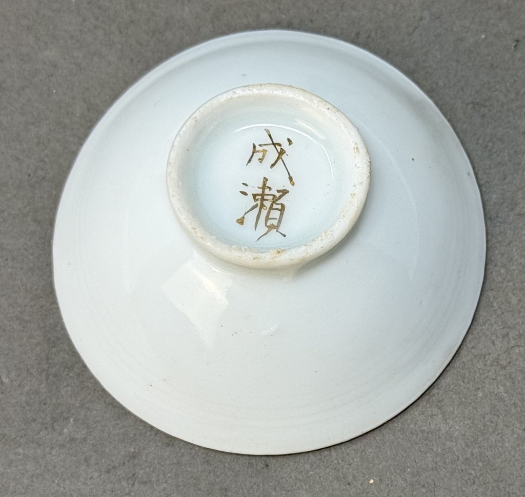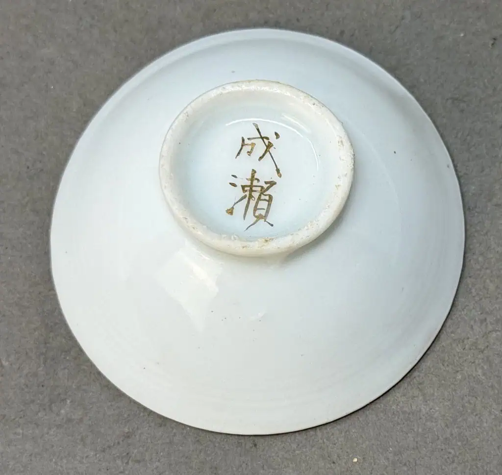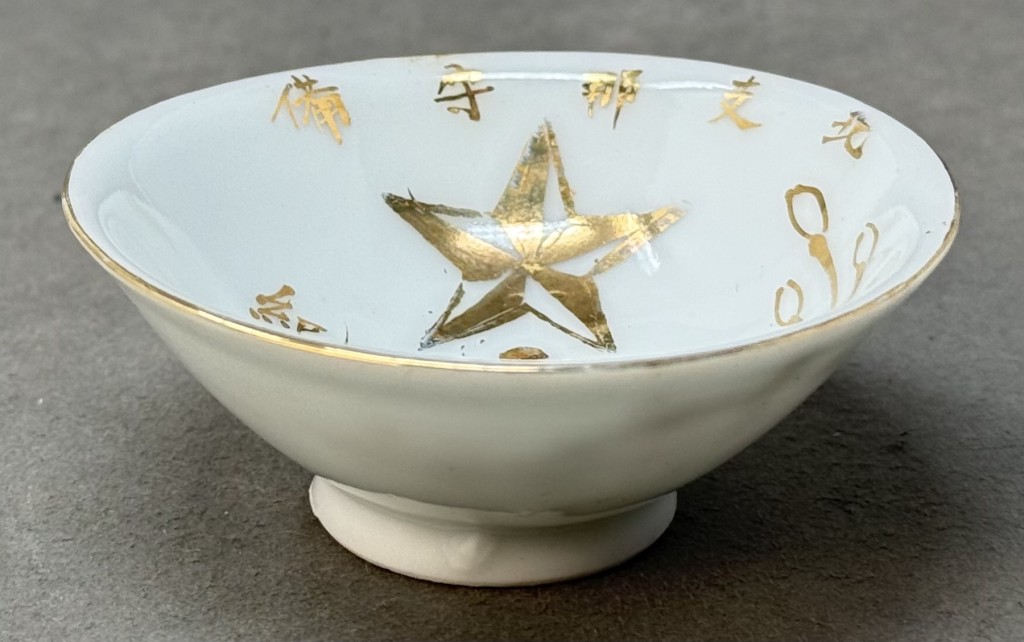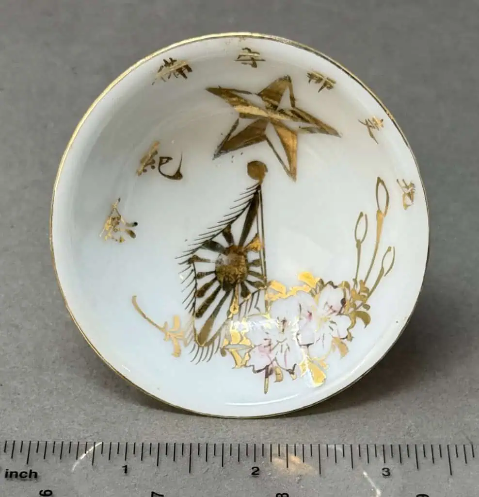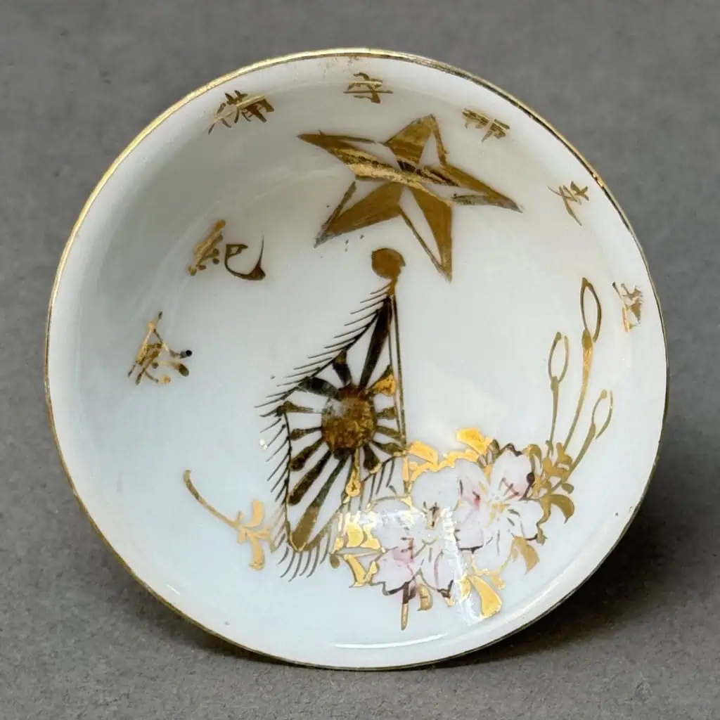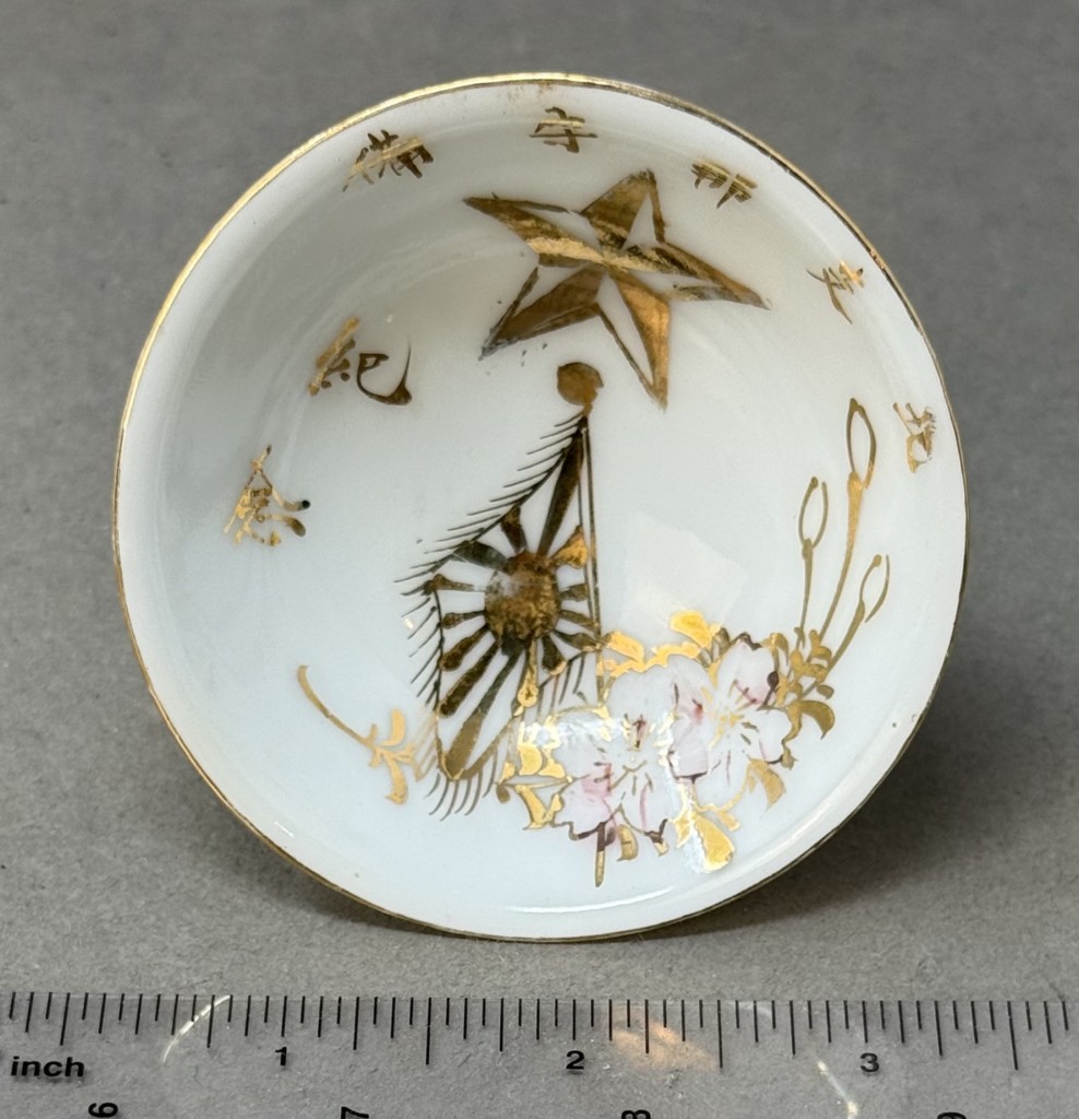 Original WWII Japanese Patriotic Saki Cup 1939 GOLD FLAGS Certified By The Gettysburg Museum Of History