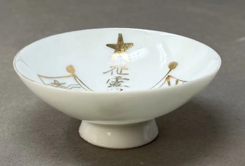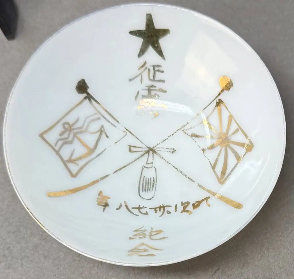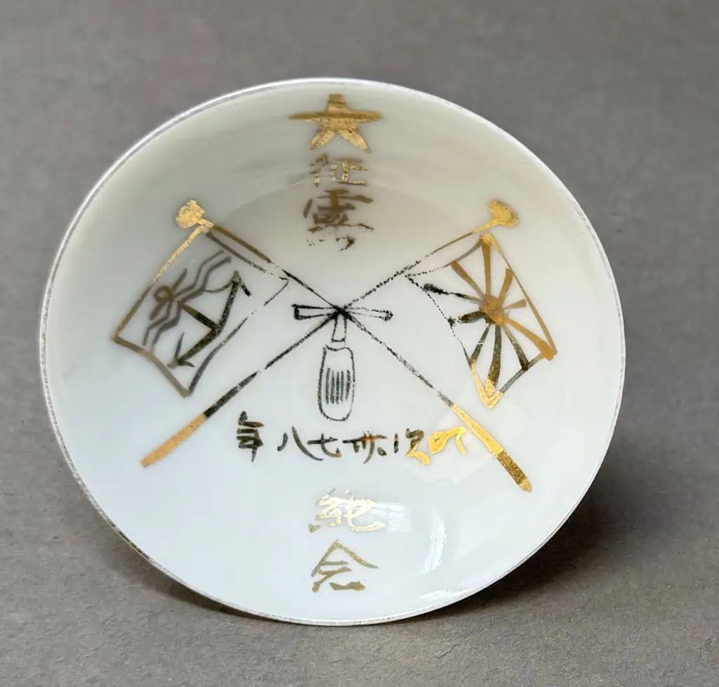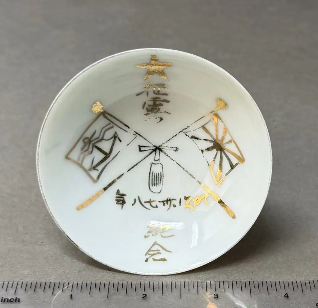 Original WWII Japanese Patriotic Saki Cup 1939 GOLD FLAGS Certified By The Gettysburg Museum Of History
