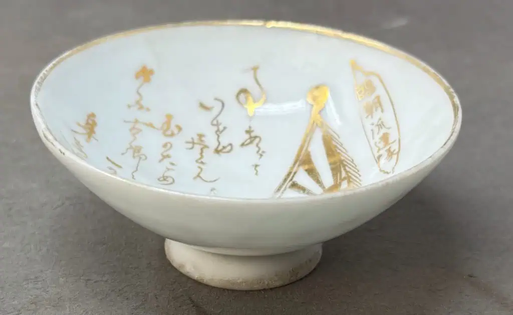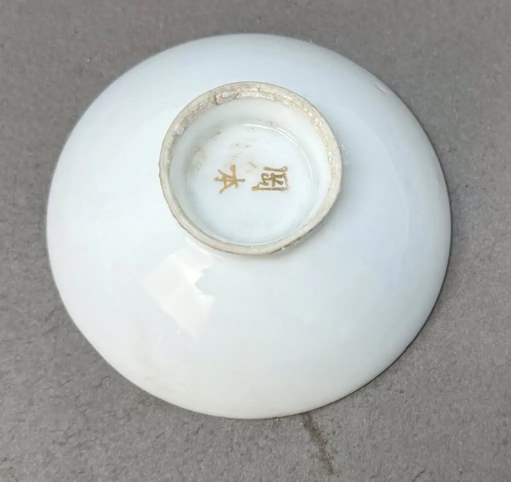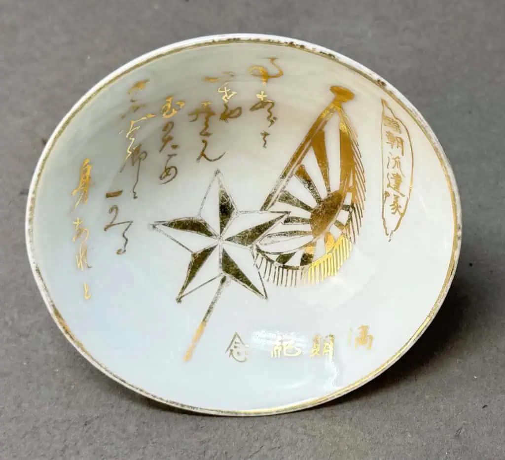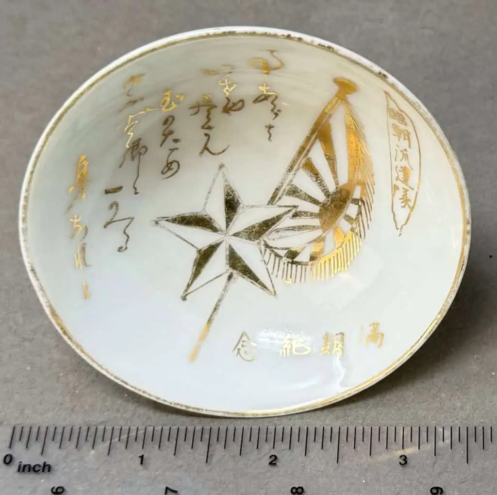 Original WWII Japanese Patriotic Saki Cup 1939 GOLD FLAGS Certified By The Gettysburg Museum Of History