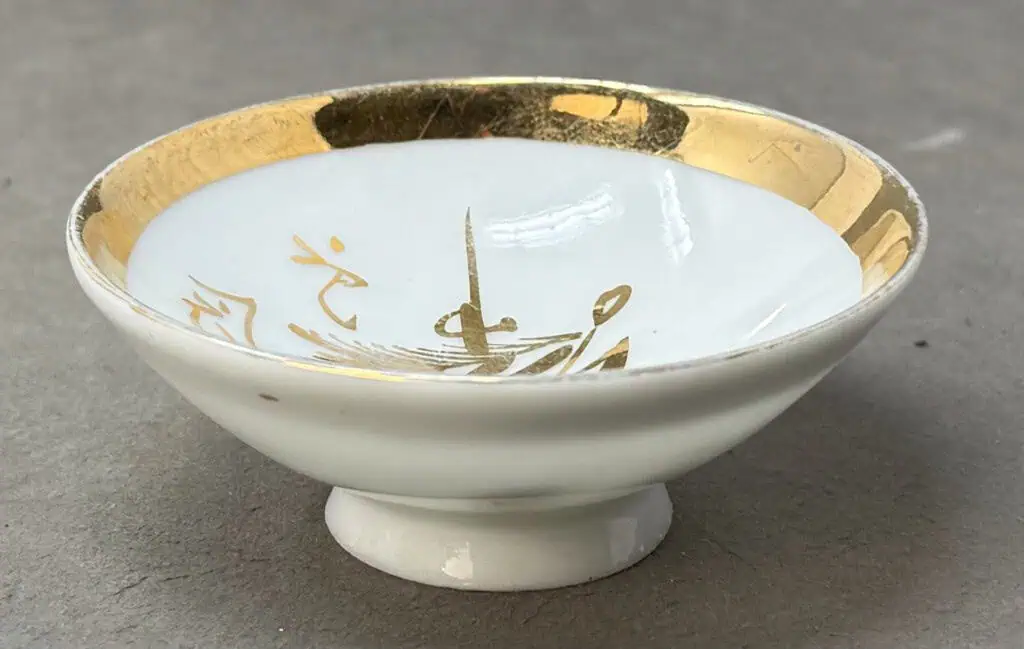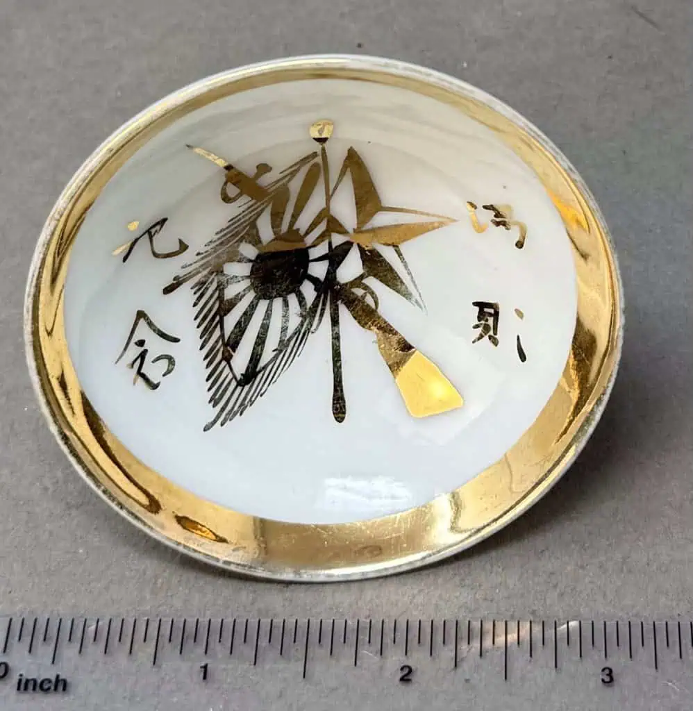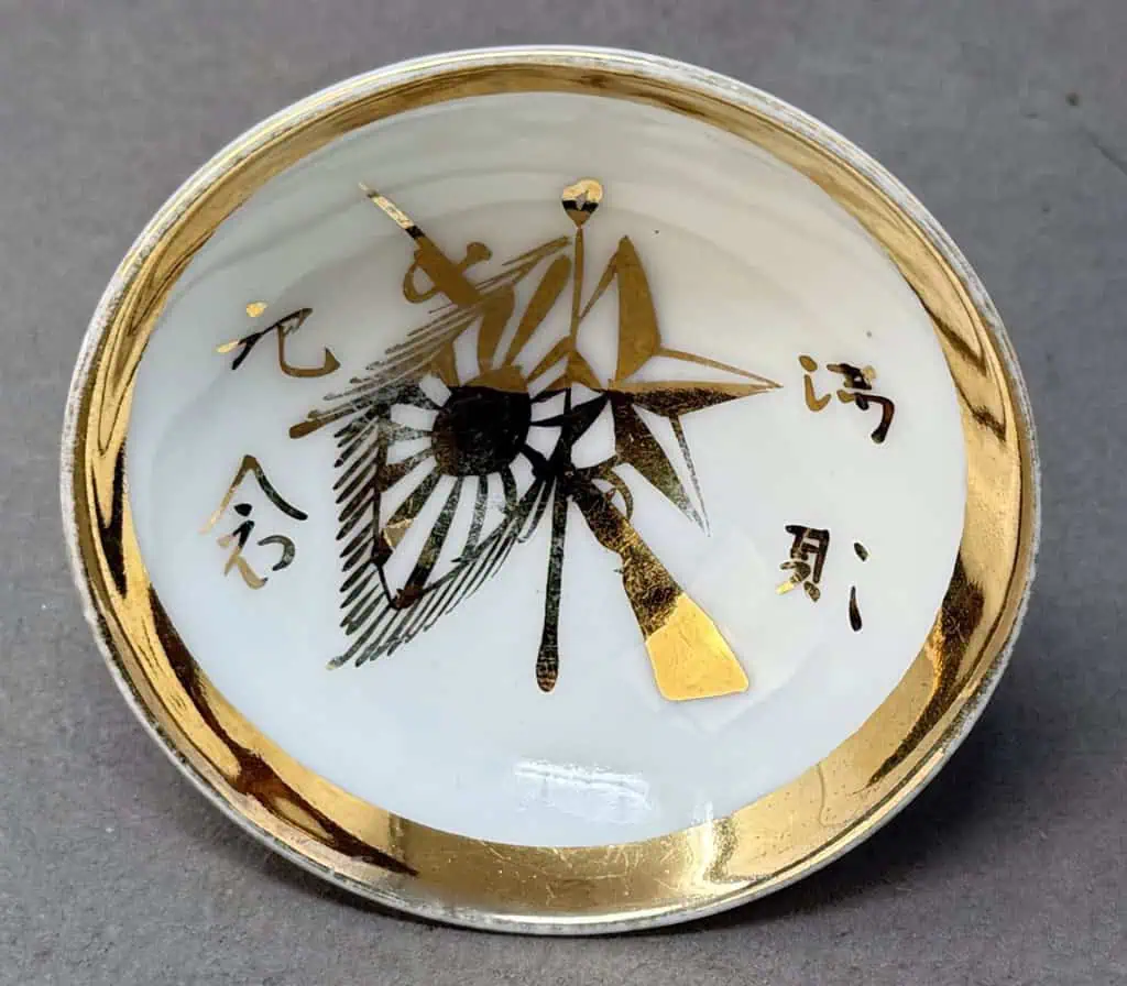 Original WWII Japanese Patriotic Saki Cup 1939 GOLD FLAGS Certified By The Gettysburg Museum Of History