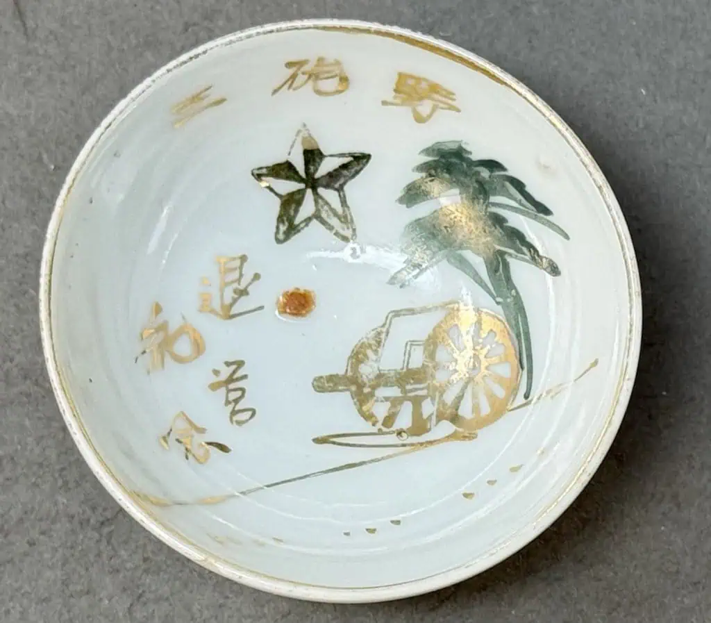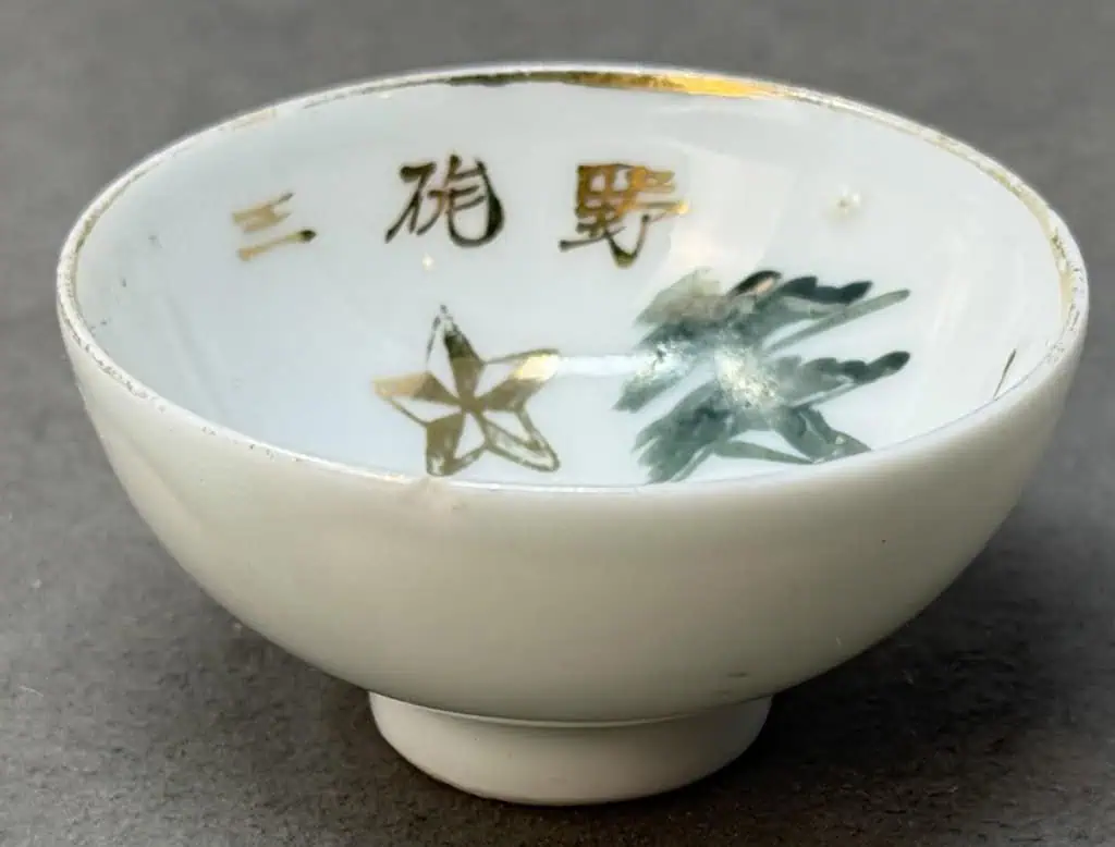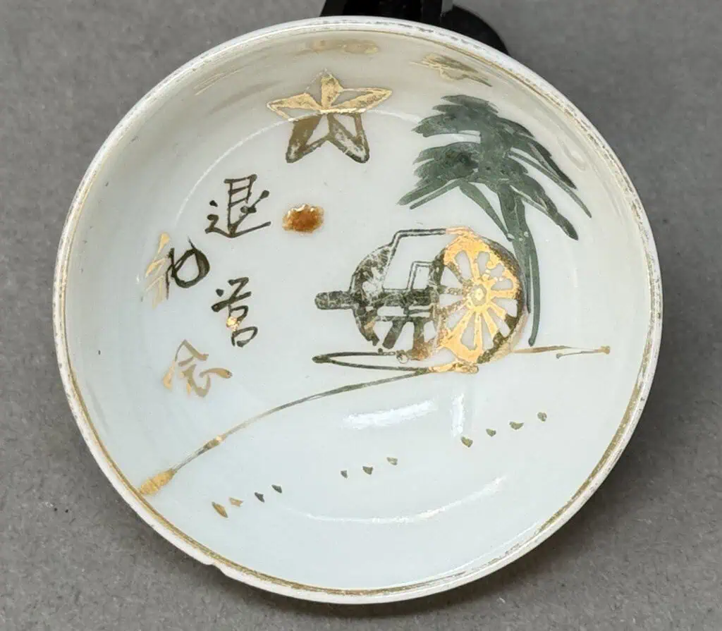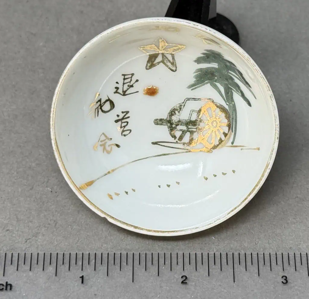 Original WWII Japanese Patriotic Saki Cup With Cannon And Kanji Certified By The Gettysburg Museum Of History