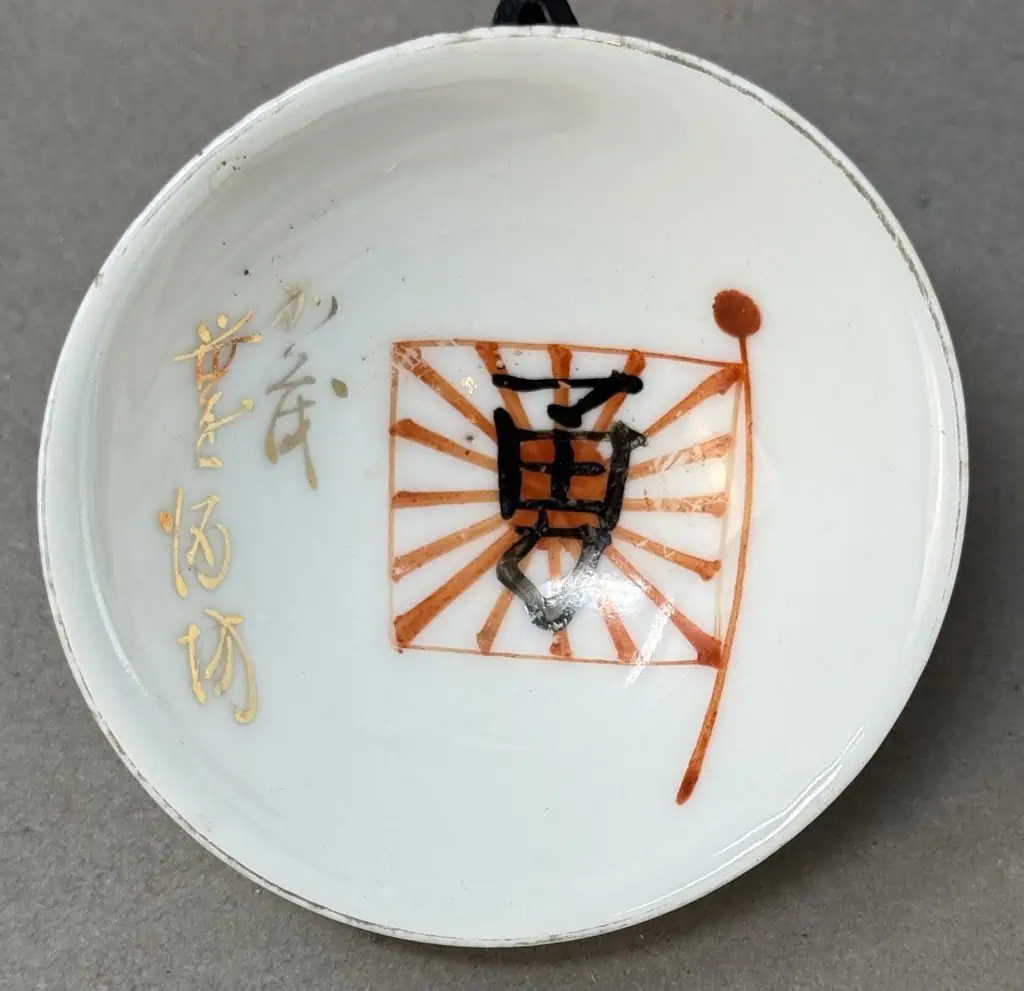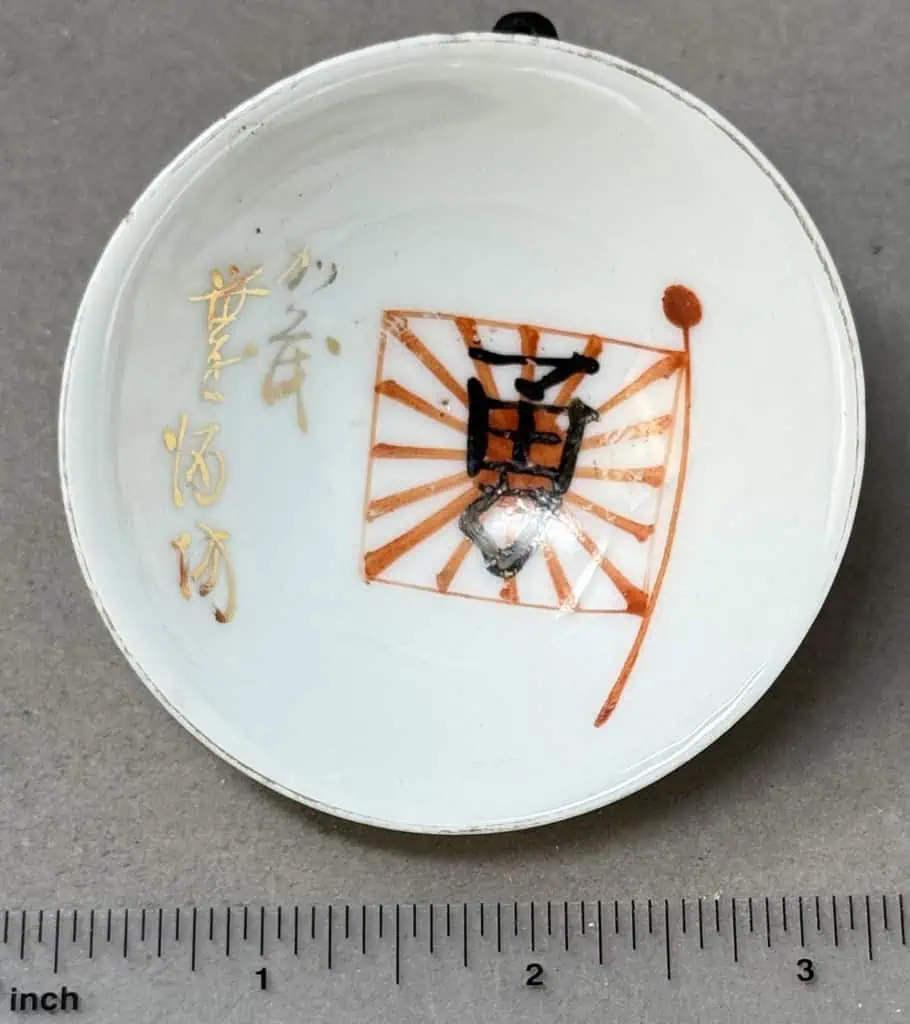 Original WWII Japanese Patriotic Saki Cup With Rising Sun Flag And Kanji Certified By The Gettysburg Museum Of History