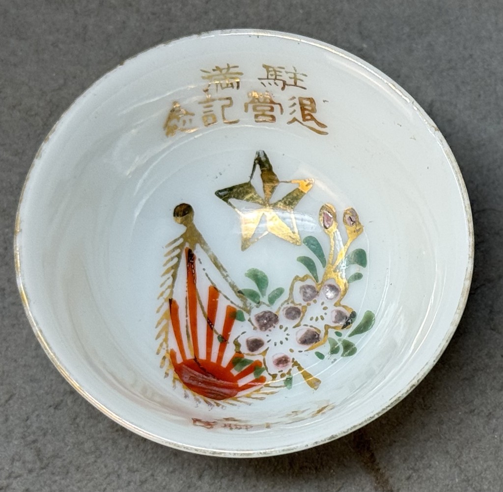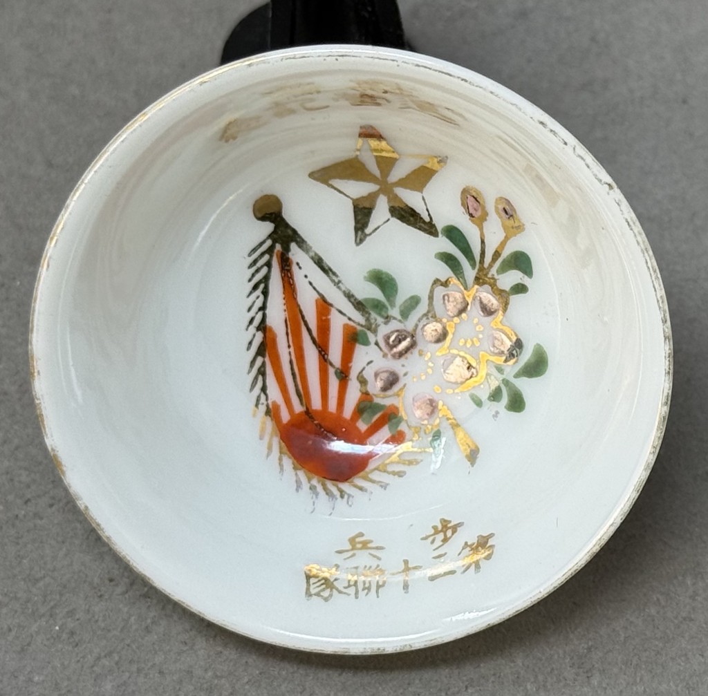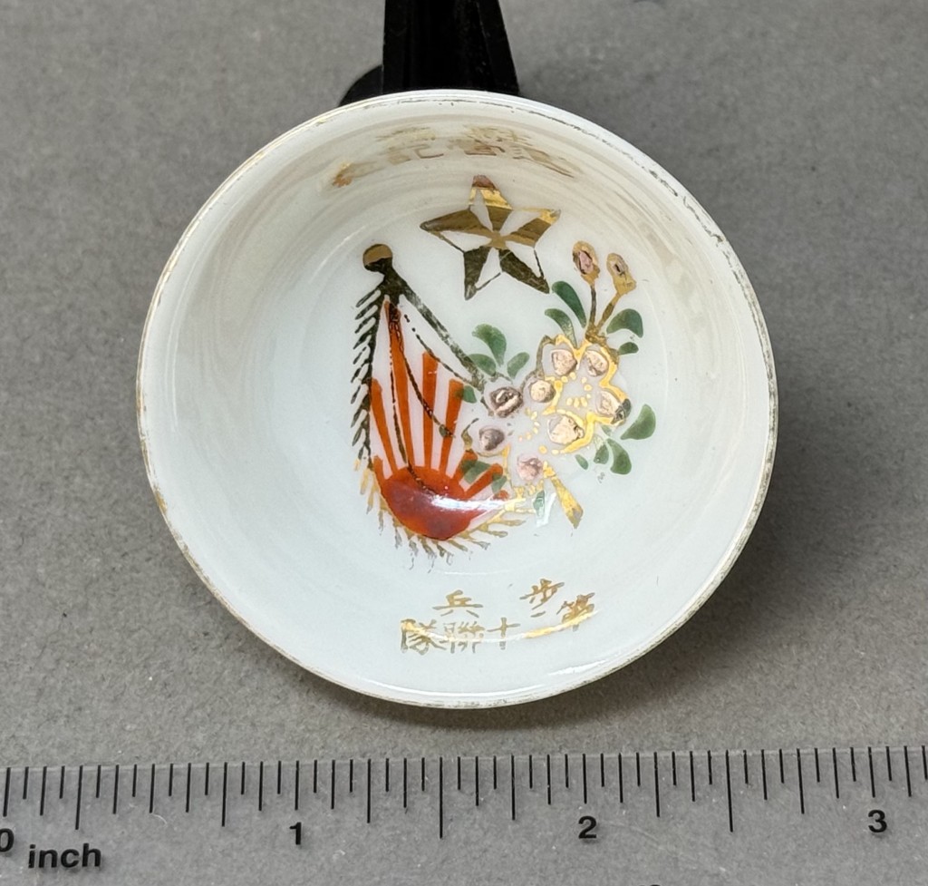 Original WWII Japanese Patriotic Saki Cup With Rising Sun Flag And Kanji Certified By The Gettysburg Museum Of History