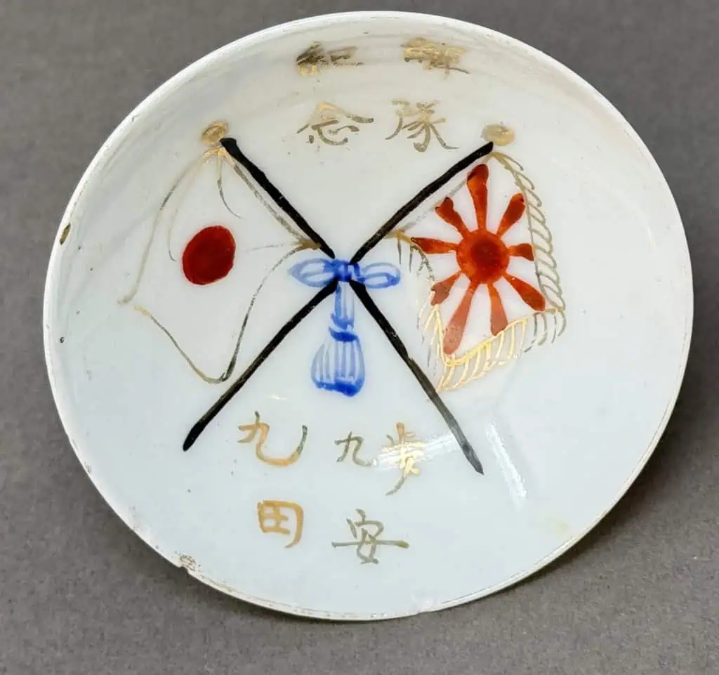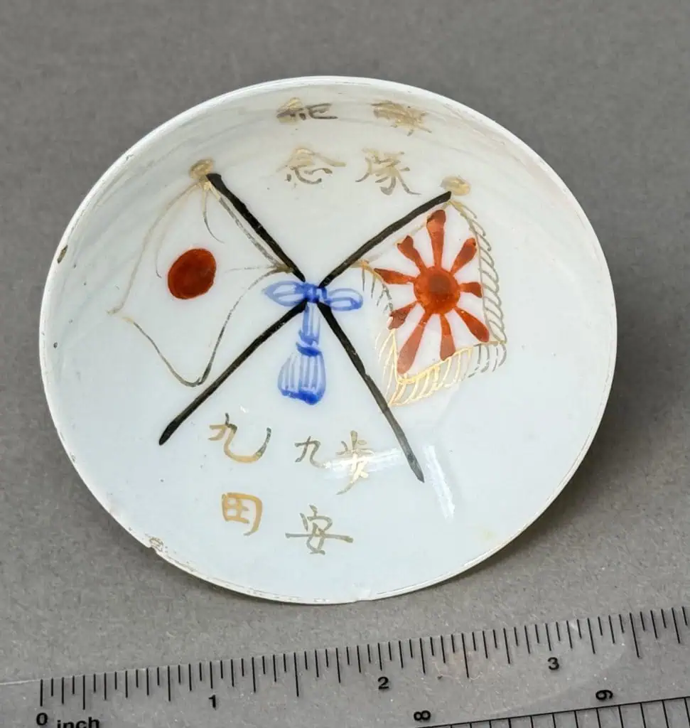 Original WWII Japanese Patriotic Saki Cup With Rising Sun Flag And Kanji Certified By The Gettysburg Museum Of History