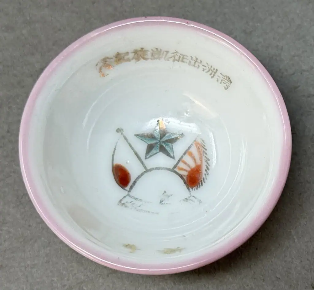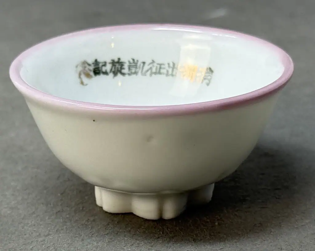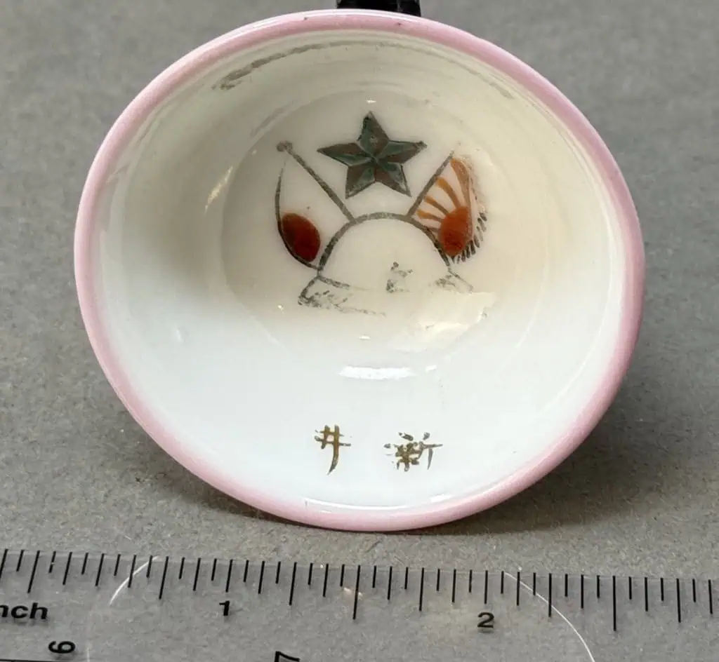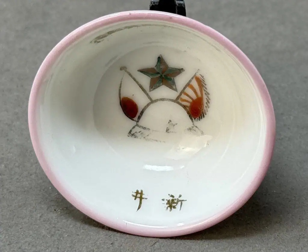 Original WWII Japanese Patriotic Saki Cup With Rising Sun Flag And Kanji Certified By The Gettysburg Museum Of History