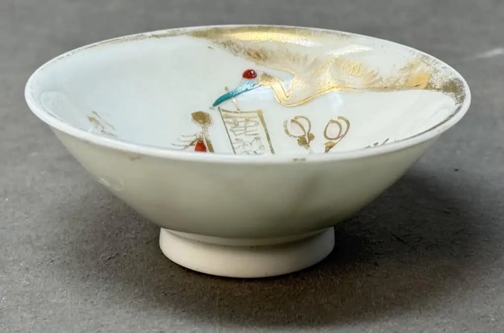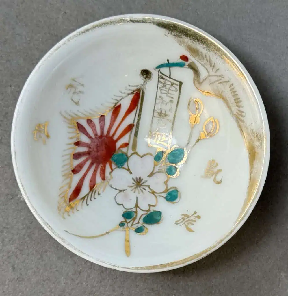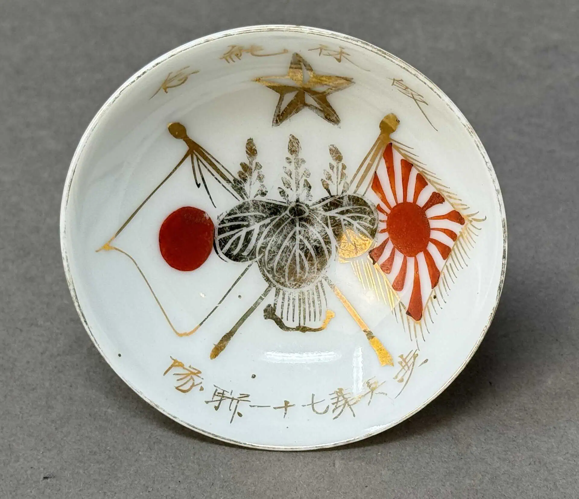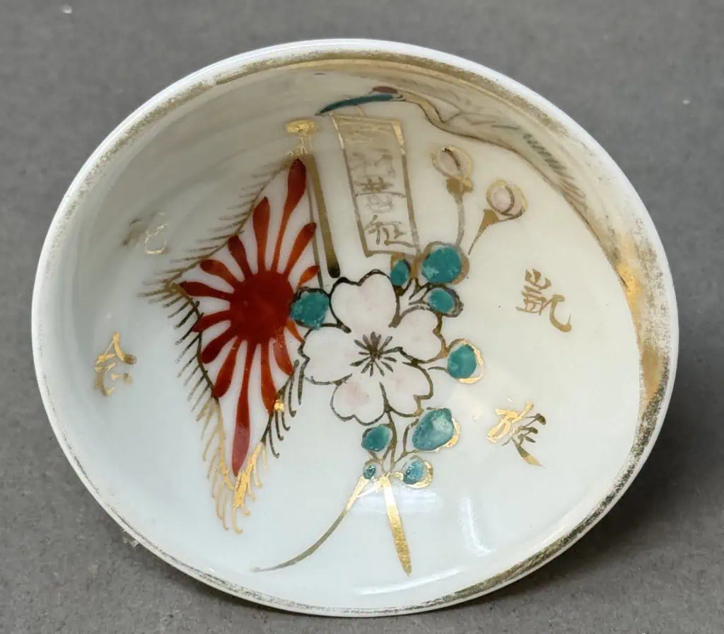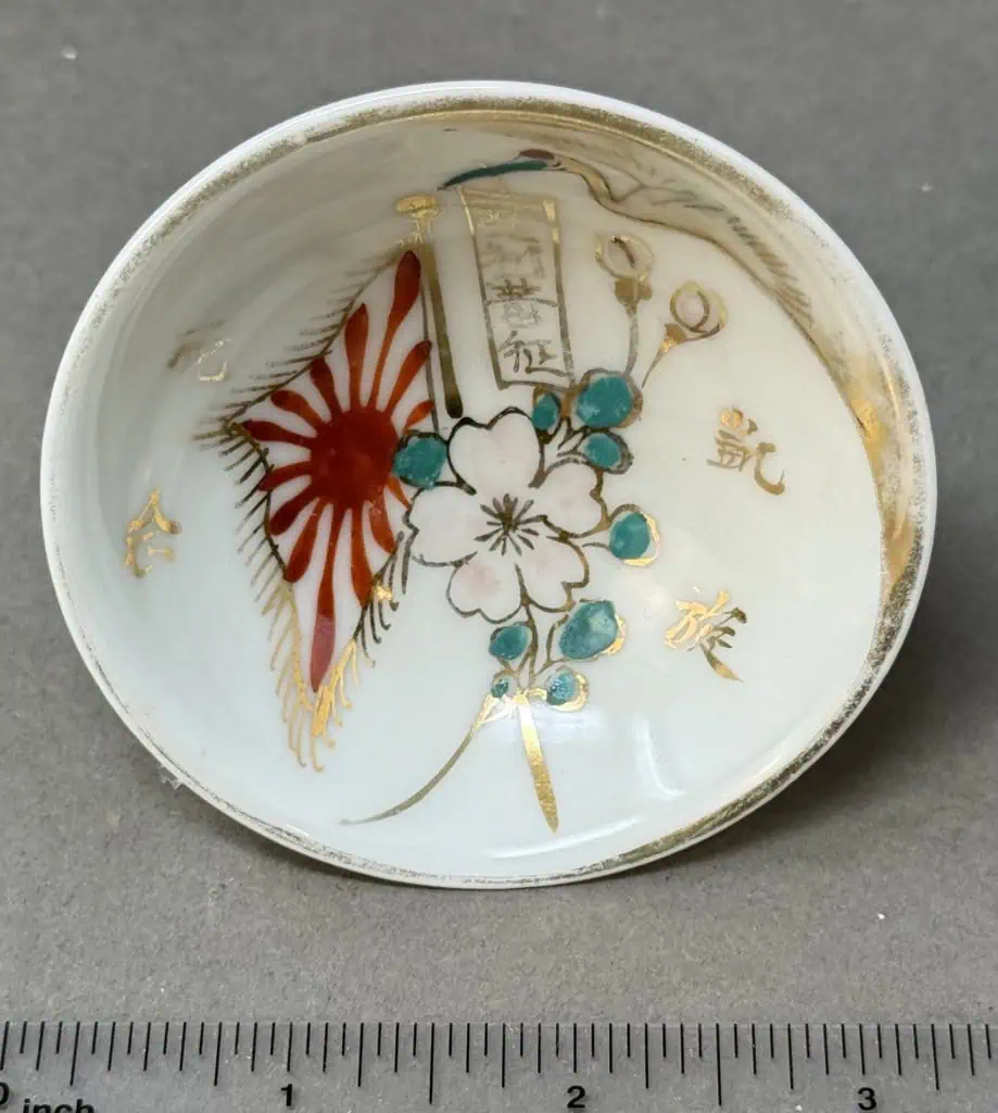 Original WWII Japanese Patriotic Saki Cup With Rising Sun Flag And Kanji Certified By The Gettysburg Museum Of History