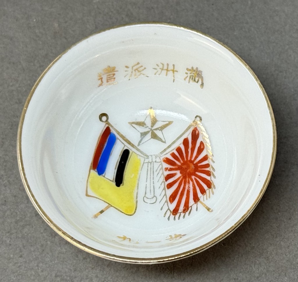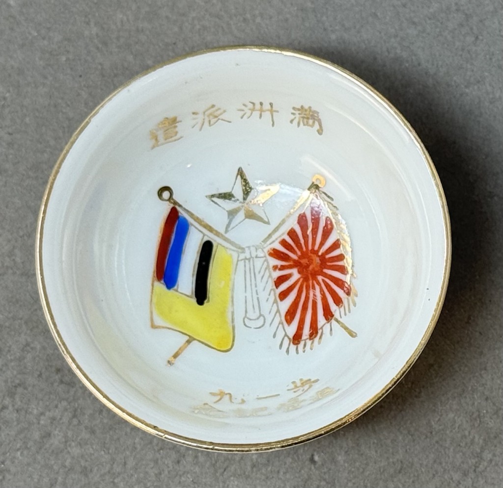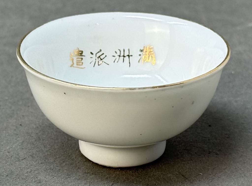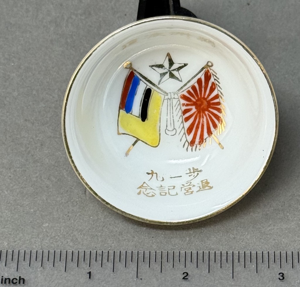 Original WWII Japanese Patriotic Saki Cup With Rising Sun Flag And Kanji Certified By The Gettysburg Museum Of History