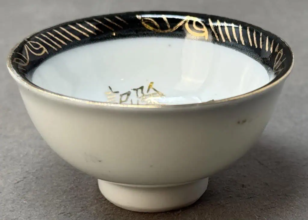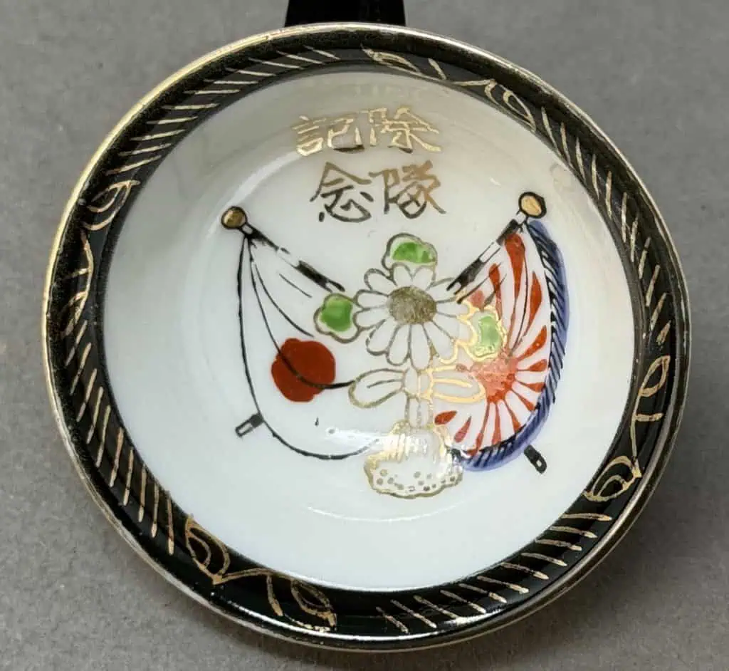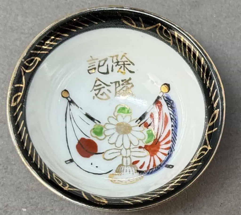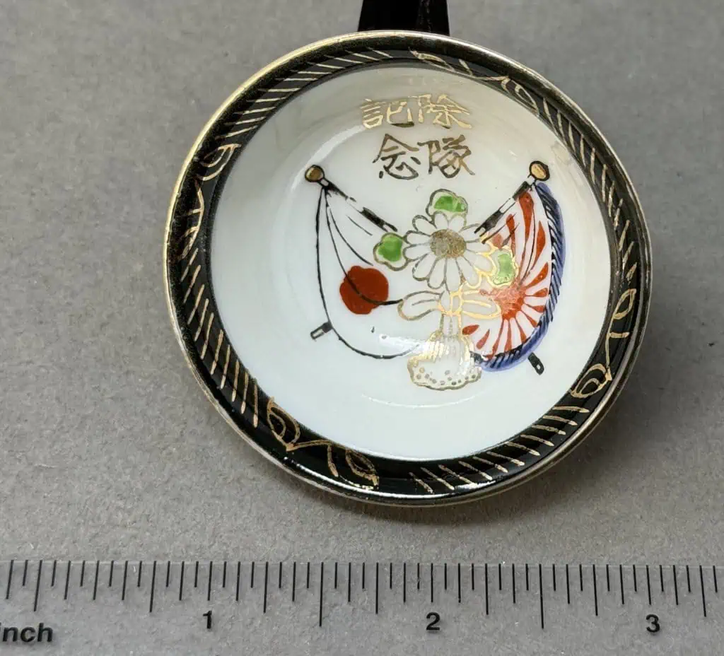 Original WWII Japanese Patriotic Saki Cup With Rising Sun Flag And Kanji Certified By The Gettysburg Museum Of History