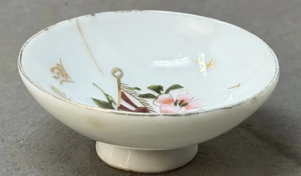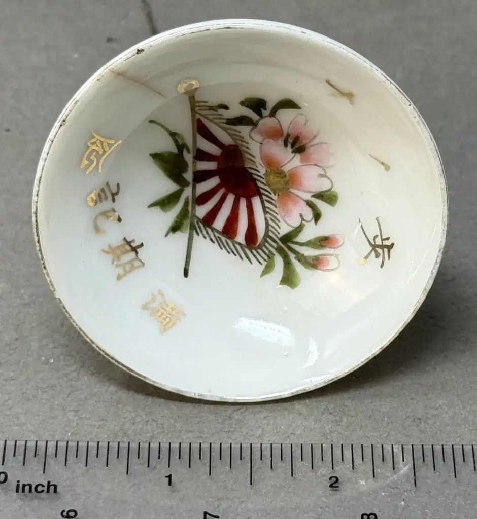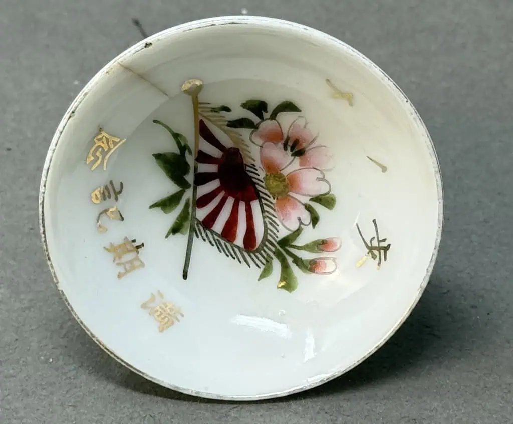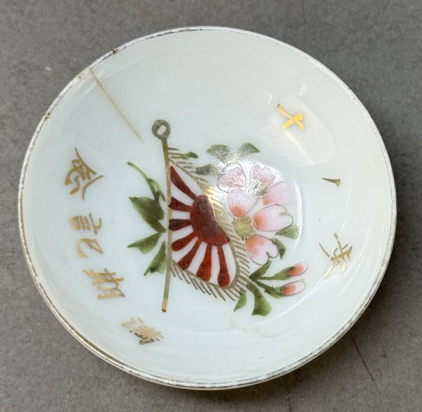 Original WWII Japanese Patriotic Saki Cup With Rising Sun Flag And Kanji Certified By The Gettysburg Museum Of History