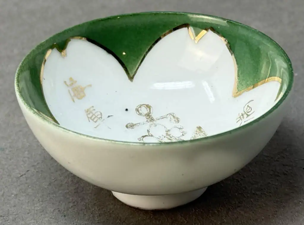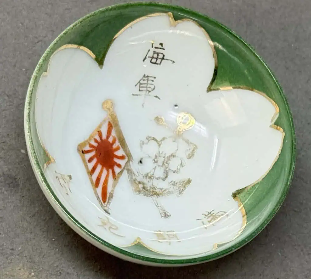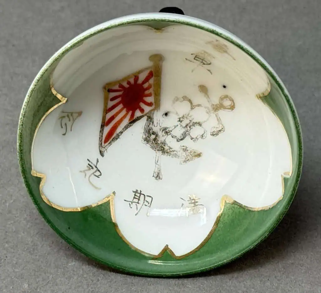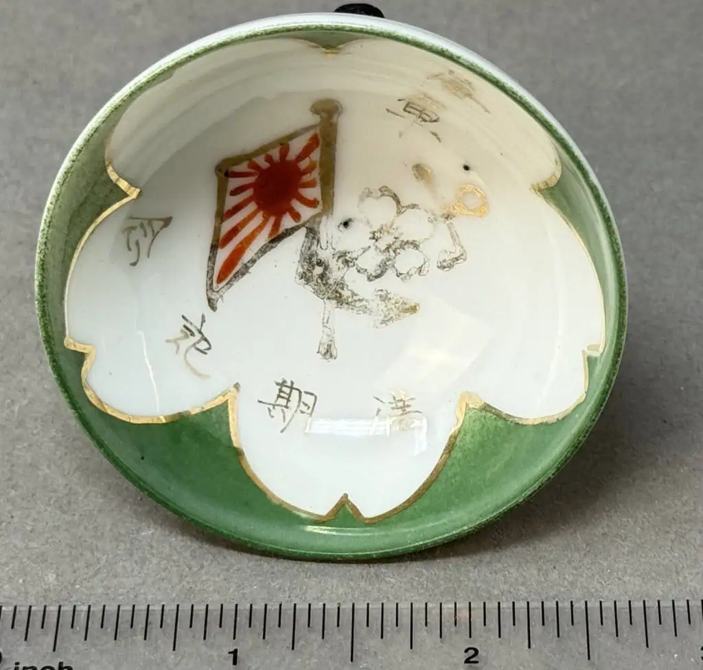 Original WWII Japanese Patriotic Saki Cup With Rising Sun Flag And Kanji Certified By The Gettysburg Museum Of History