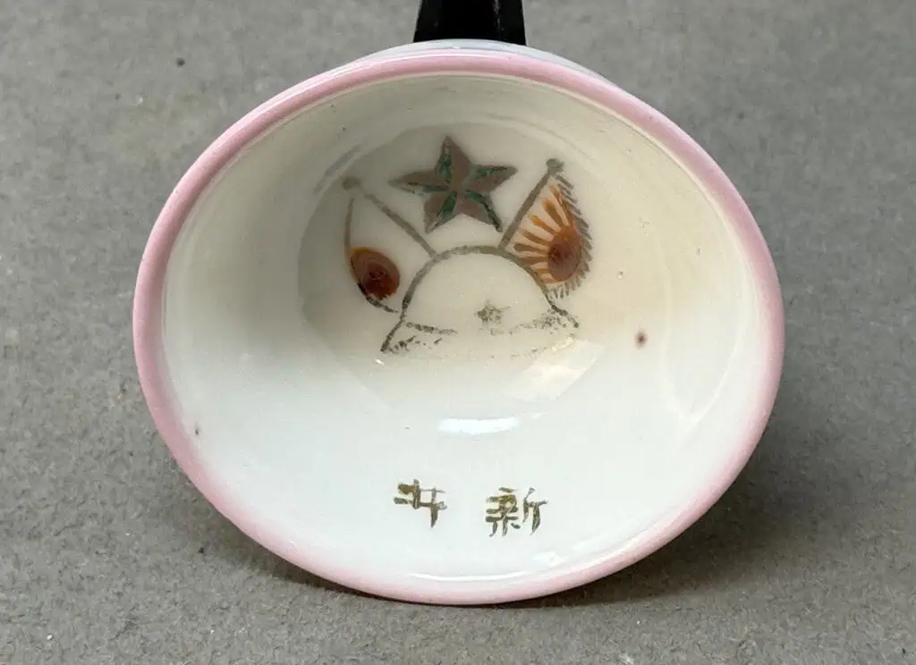Original WWII Japanese Patriotic Saki Cup With Rising Sun Flag And Kanji Certified By The Gettysburg Museum Of History