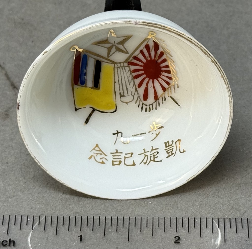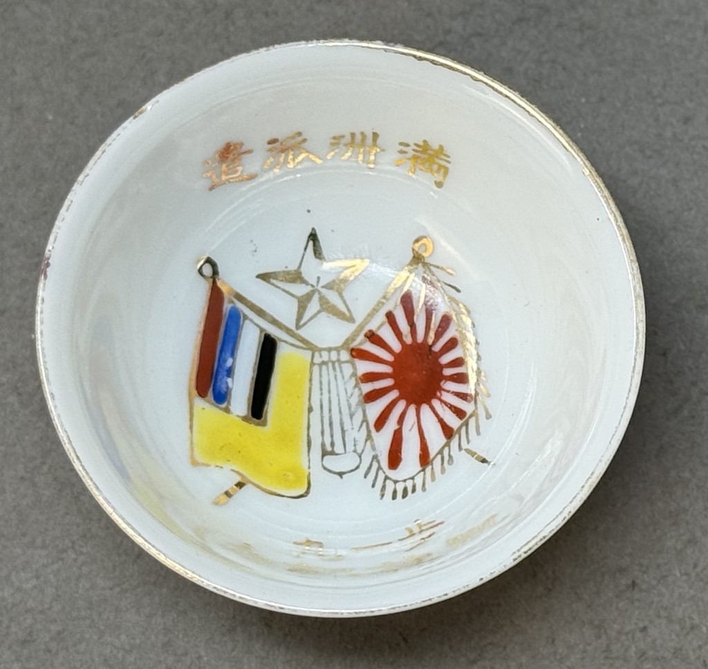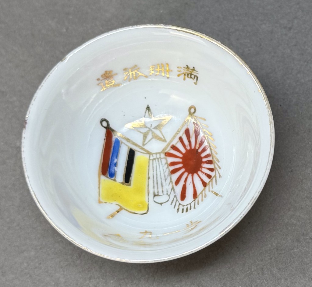 Original WWII Japanese Patriotic Saki Cup With Rising Sun Flag And Kanji Certified By The Gettysburg Museum Of History
