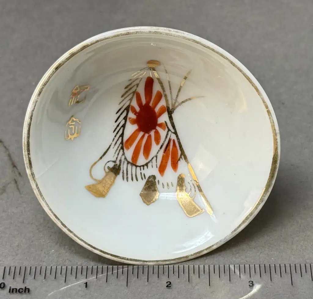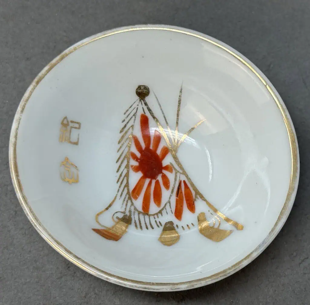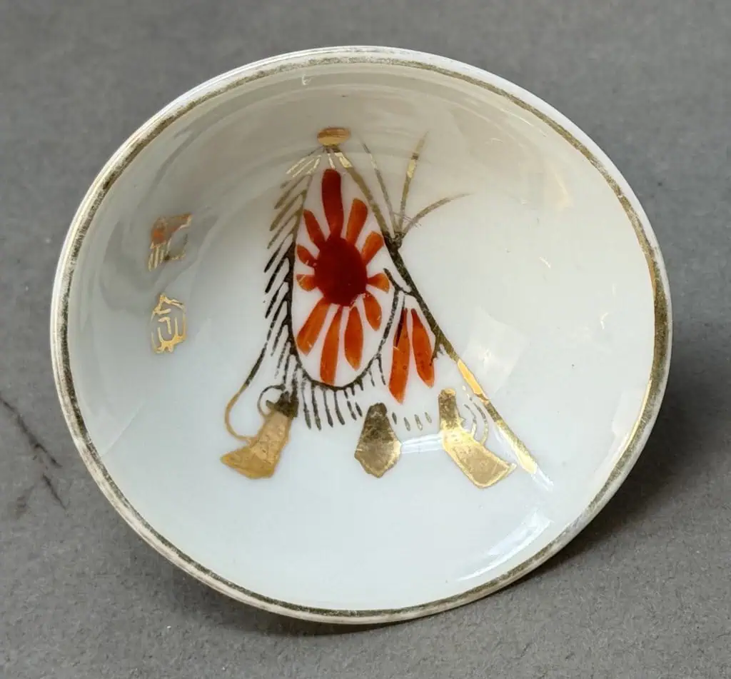 Original WWII Japanese Patriotic Saki Cup With Rising Sun Flag And Kanji Certified By The Gettysburg Museum Of History