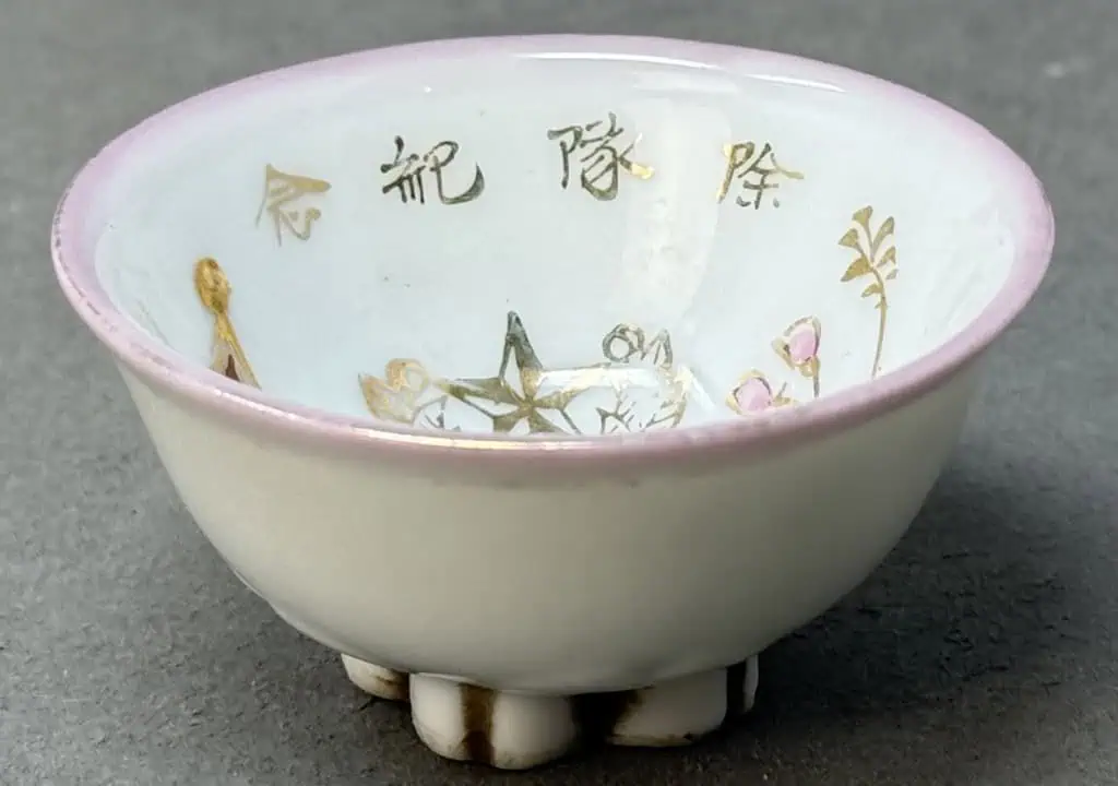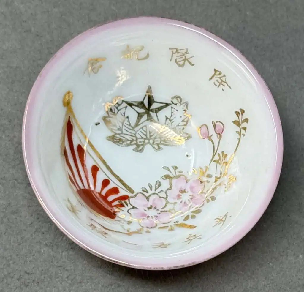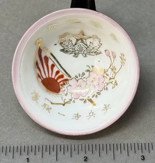 Original WWII Japanese Patriotic Saki Cup With Rising Sun Flag And Kanji Certified By The Gettysburg Museum Of History
