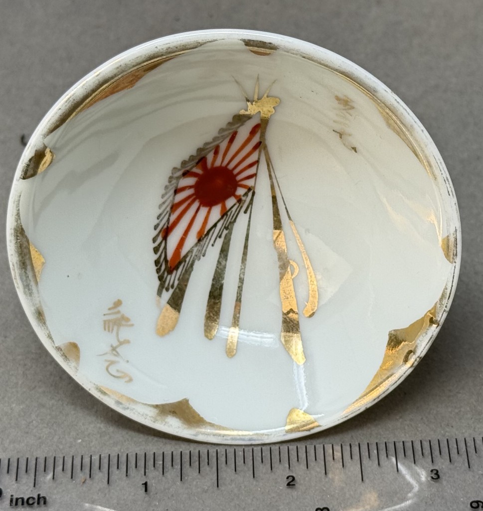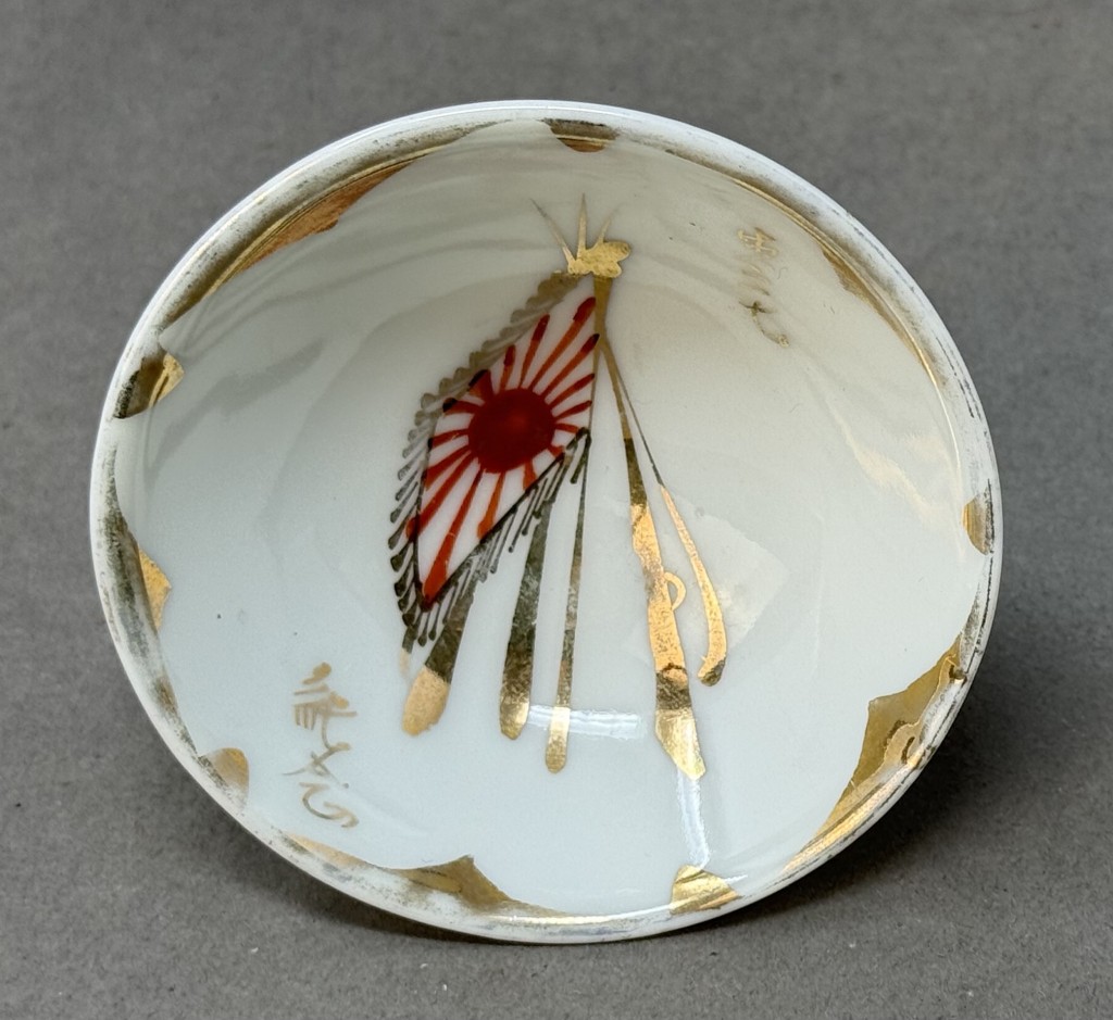 Original WWII Japanese Patriotic Saki Cup With Rising Sun Flag And Kanji Certified By The Gettysburg Museum Of History