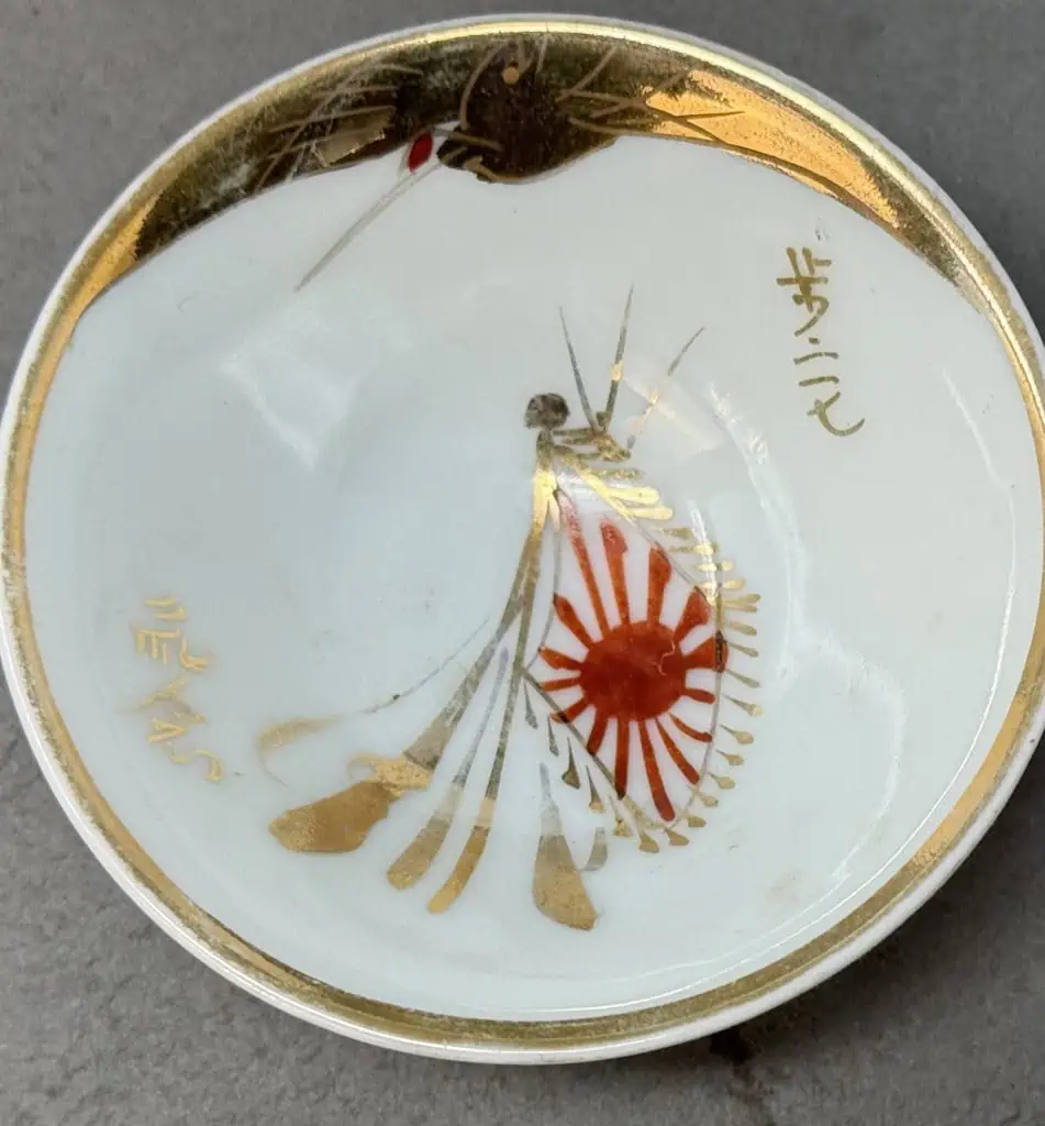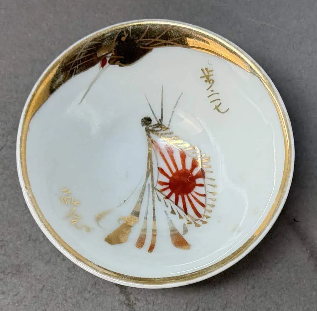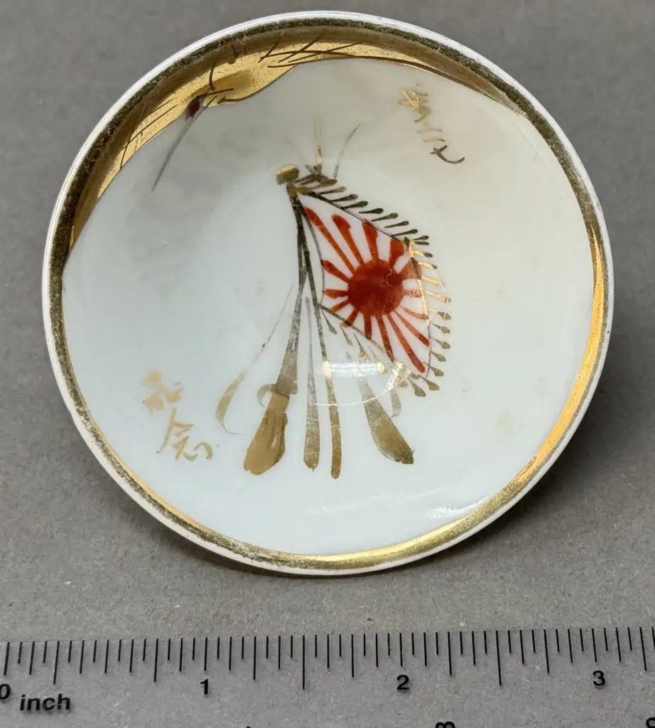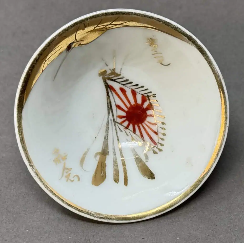 Original WWII Japanese Patriotic Saki Cup With Rising Sun Flag And Kanji Certified By The Gettysburg Museum Of History