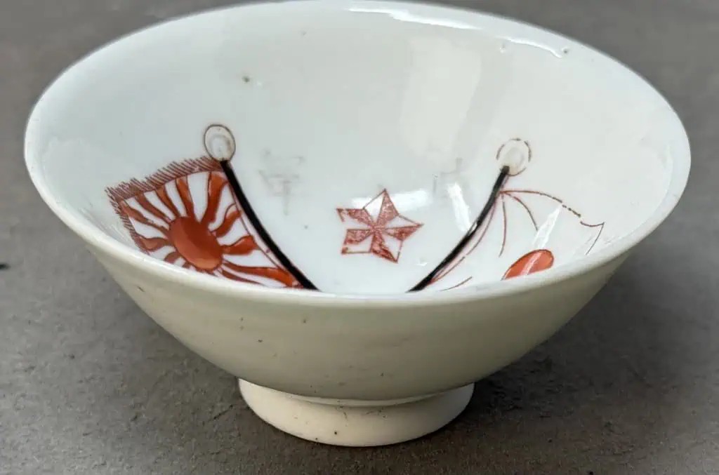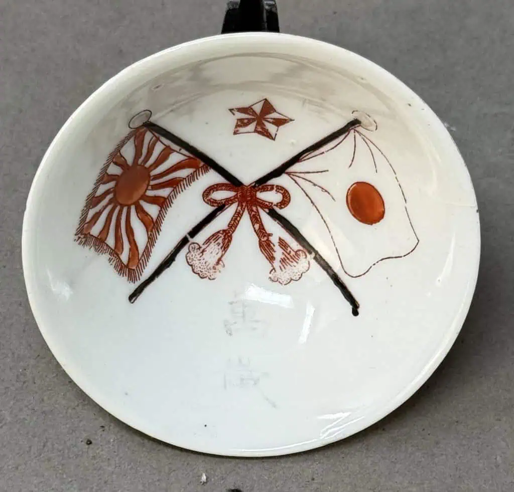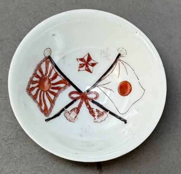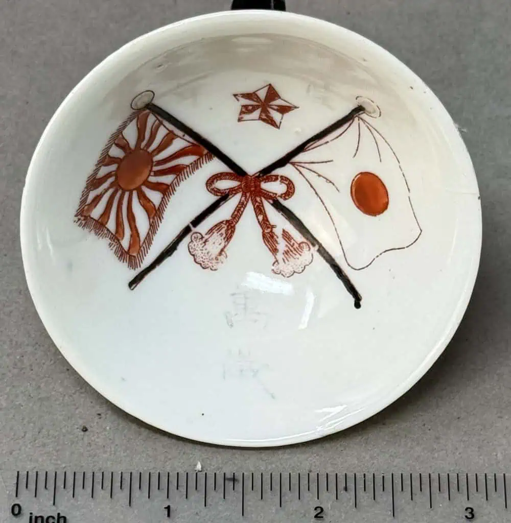 Original WWII Japanese Patriotic Saki Cup With Rising Sun Flag And Kanji Certified By The Gettysburg Museum Of History