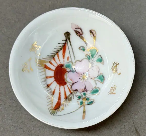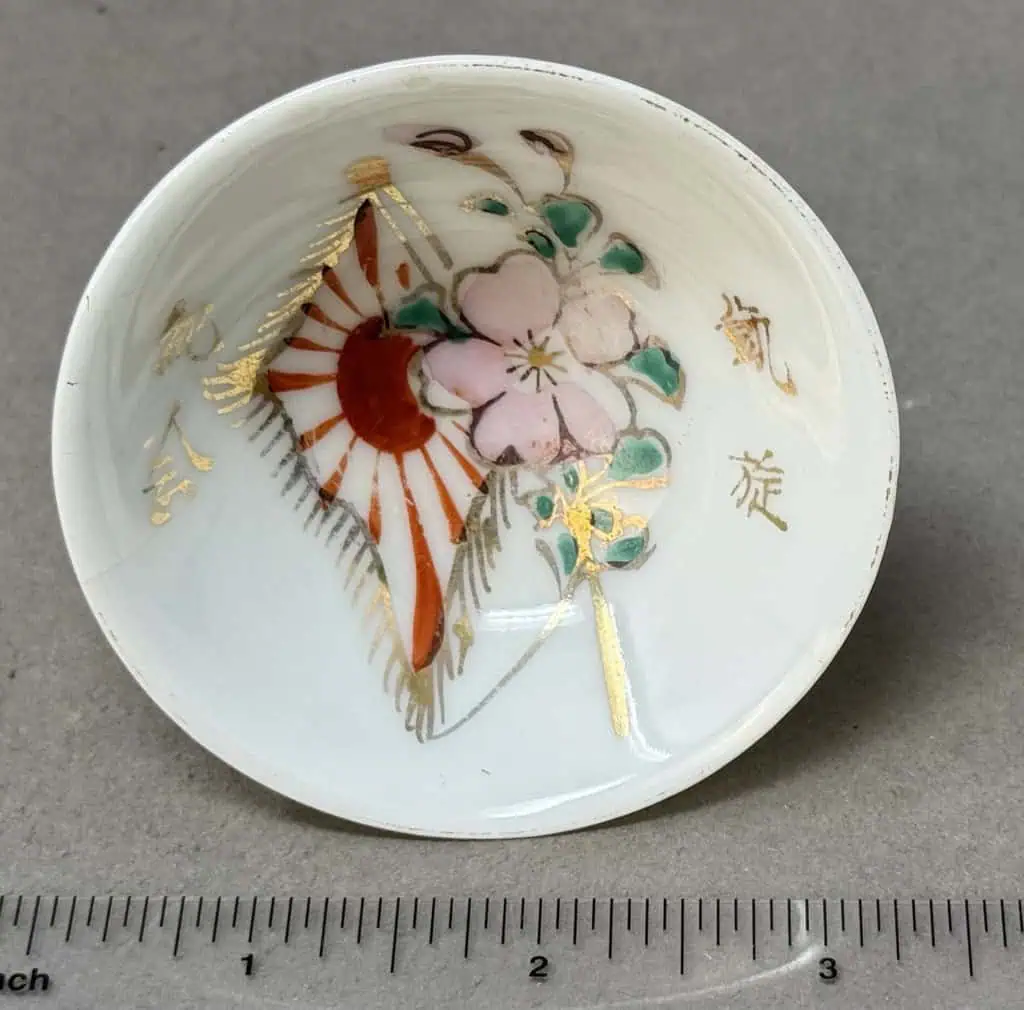 Original WWII Japanese Patriotic Saki Cup With Rising Sun Flag And Kanji Certified By The Gettysburg Museum Of History