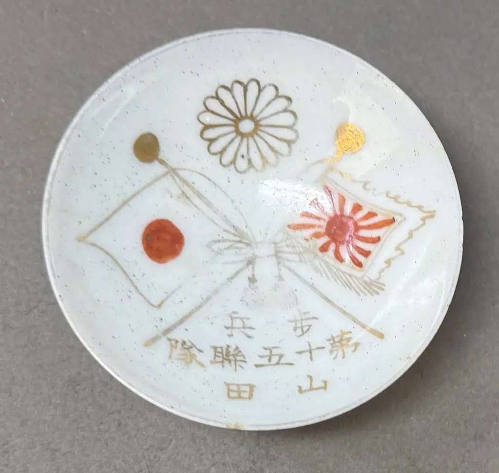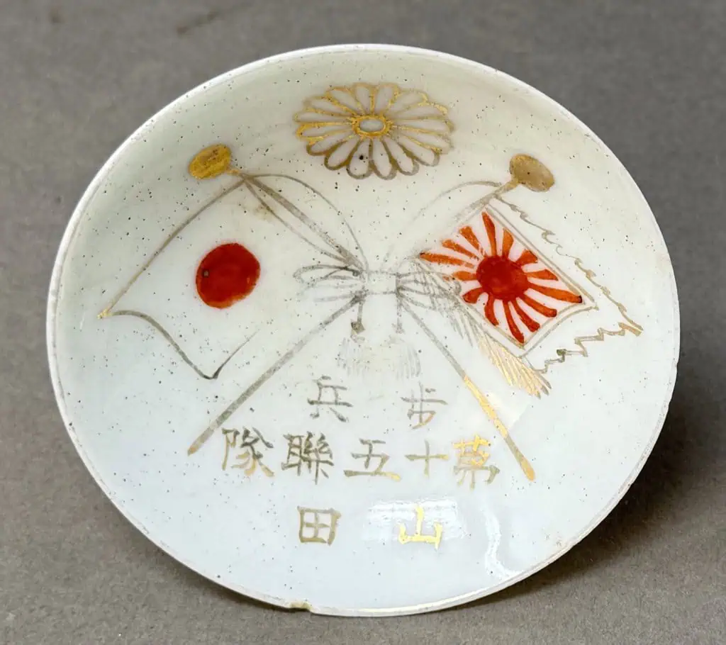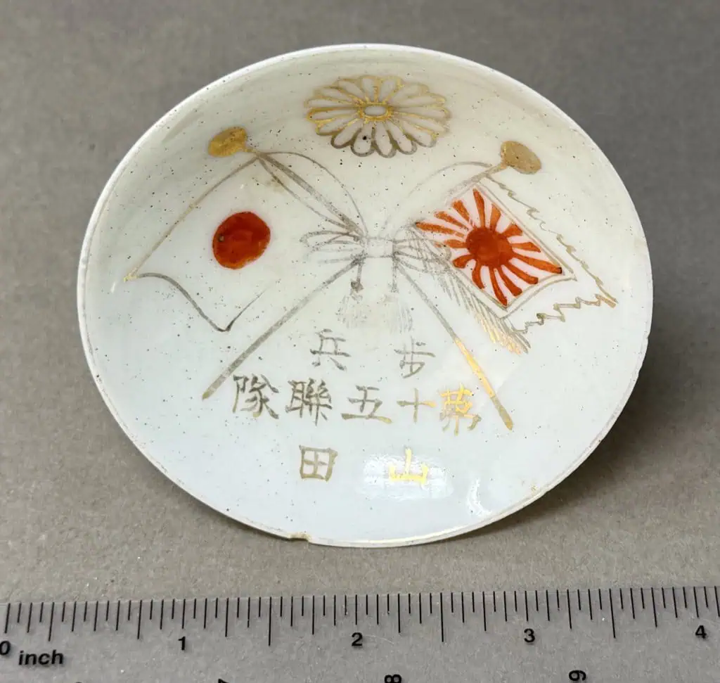Original WWII Japanese Patriotic Saki Cup With Rising Sun Flag And Kanji Certified By The Gettysburg Museum Of History