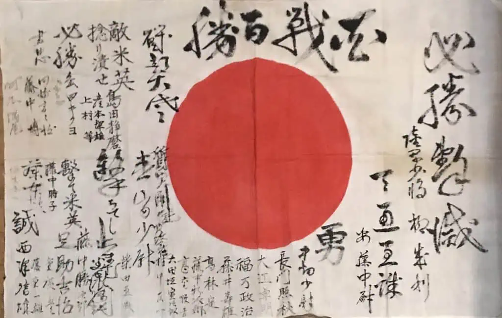 Original WWII Japanese SOLDIER’S PERSONAL NATIONAL FLAG WITH KANJI Certified