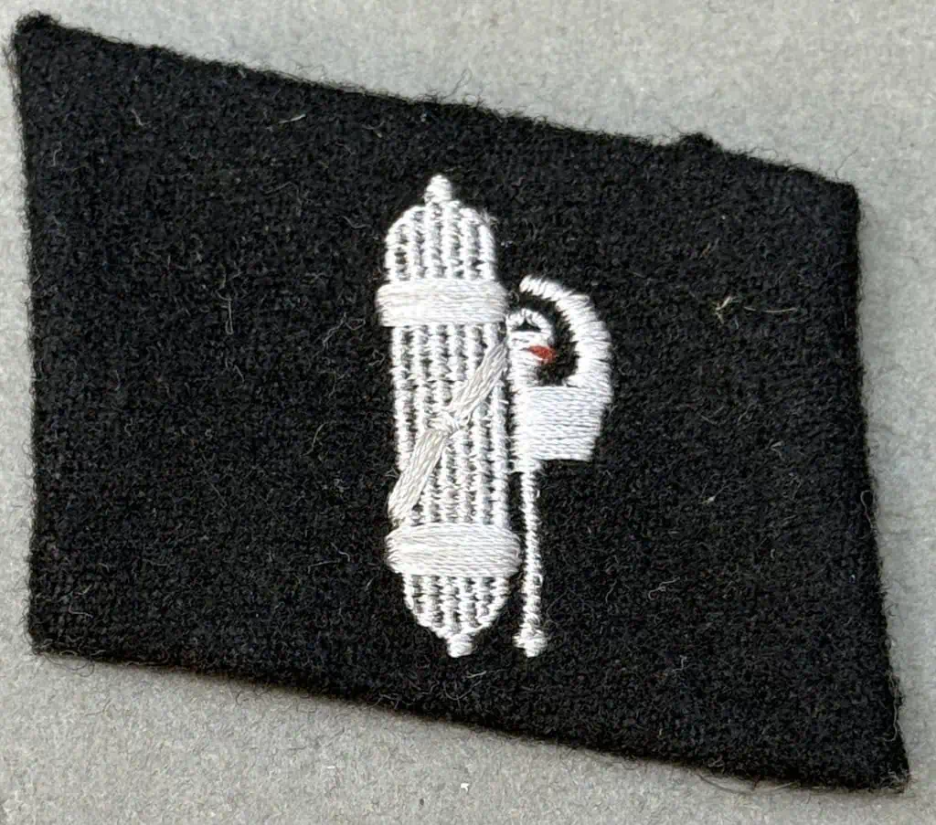Original WWII German Waffen SS GRENADIER-DIVISION DER SS (ITALIENISCHE NR.1) COLLAR TAB. (Kragenpatte) Certified. In August 1929 the SS, Schutz Staffel, (Protection Squad), incorporated the wear of rank collar tabs on the left side of the collar of the service tunic. The SS collar tabs were originally adopted from the earlier rank collar tabs as utilized by the SA, Sturm Abteilung, (Storm/Assault Detachment). The SS collar tabs remained in usage through-out the war with a couple of minor alterations. Originally EM/NCO’s collar tabs for the ranks of SS-Schütze to SS-Hauptscharführer inclusively were piped in twisted white cord from their original inception, (Rank tabs, August 1929/Runic tabs, May 1933), until October 24TH 1934 when the piping for EM/NCO’s was modified to alternating twisted black and silver/aluminum cord piping. The final modification, in August 1940, eliminated all piping from EM/NCO’s collar tabs. Officer’s ranks collar tabs from SS-Untersturmführer to SS-Hauptsturmführer utilized alternating twisted black and silver/aluminum cord piping from their inception until October 24TH 1934 and silver/aluminum cord piping from October 1934 until the end of the war while the ranks of SS-Sturmbannführer to SS-Reichsführer utilized the silver/aluminum cord piping from August 1929 to May 1945. With the arrest and imprisonment of Italy’s Duce Benito Mussolini on July 25TH 1943, Italy immediately became embroiled in a virtual civil war between the pro and anti-fascist elements within the country. On September 8TH 1943 Italy officially ended hostilities with the allies and four days later Mussolini was rescued by the Germans and set up the puppet Republica Sociale Italiana, (Italian Social Republic), government in northern Italy. In October and November of 1943, the Germans began to enlist pro-fascist Italians and formed the 1. Italienische Freiwillingen Sturmbrigade Milizia Armata, (1ST Italian Volunteer Assault Brigade of the Armed Militia), in southern Germany. In January 1944 the Brigade returned to Italy and participated in the battle of the Anzio beachhead in the spring of that year. Originally Italian personnel of the brigade wore red collar patches with a silver fasces but in recognition of their service in the Battle of Anzio a black collar tab with a silver fasces was introduced for wear on June 15TH 1944. Of Note: In September 1944 the Brigade was upgraded to divisional status and eventually evolved into the 29. Waffen-Grenadier-Division der SS (italienische Nr.1). In March 1945 the division was allocated the numerical designation, “29”, long after the disbanding of the same numbered Russian division. Black wool construction, right hand side, unit designation collar tab features a machine embroidered, fasces in silvery/grey rayon threads with a small, red, thread accent. The collar tab is mounted on a tan buckram backing. The collar tab is in overall very good condition. Nice used example showing the expected but mild storage age and wear. 100% Guaranteed to be authentic Brought home by a U.S. solider as a trophy of war. Complete museum documentation (COA) Provided. Certified by The Gettysburg Museum of History. The Gettysburg Museum of History does not support or condone Adolf Hitler or the Nazi Party and is only offering this as a historic relic. Please see our other items. Also note when browsing our web site there are several pages of items, at the bottom of the list look for other page numbers. SS Insignia is very Scarce and Desirable to Collectors and Historians! Don’t Miss It! ALMOST MINT!