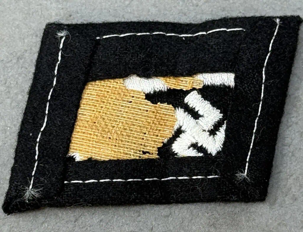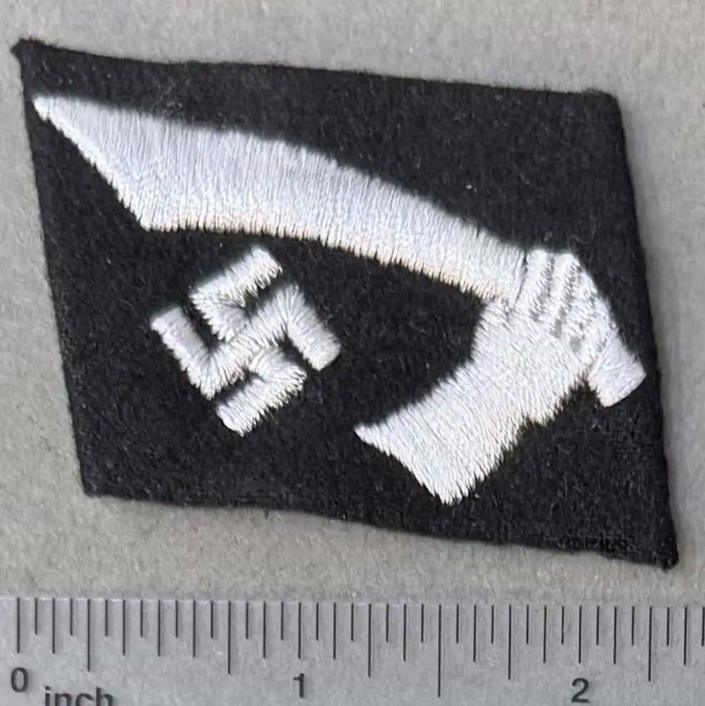 Original WWII Waffen SS WAFFEN-GEBIRGS-DIVISION DER SS “HANDSCHAR” (KROAT.NR.1). COLLAR TAB. (Kragenpatte) Certified. In August 1929 the SS incorporated the wear of rank collar tabs on the left side of the collar and unit collar tabs on the right side of the collar of the service tunic. The SS rank collar tabs were originally adopted from the earlier rank collar tabs as utilized by the SA, Sturmabteilung, (Storm Troops). The SS collar tabs remained in usage through-out the war with a couple of minor alterations and numerous additions. EM/NCO’s collar tabs were piped in twisted white cord from their original inception until to October 1934 when the piping was modified to alternating twisted black and silver/aluminum cord piping. The final modification, in August 1940, eliminated all piping from the EM/NCO’s collar tabs. On February 10TH 1943 Hitler ordered the formation of a new Waffen-SS Division to be manned by volunteers from the Independent State of Croatia. This new division would eventually evolve into the 13.Waffen-Gebirgs-Division der SS “Handschar” (kroat.Nr.1), and was primarily manned from Moslems from the Bosnia-Herzegovina region of Croatia, with a cadre of German personnel from the 7. SS-Freiwillingen-Gebirgs-Division “Prinz Eugen”. Due to the racial makeup of the divisional personnel Reichsführer-SS Heinrich Himmler forbade wear of the SS runes on the collar insignia and it was decided that another suitable symbol be utilized and the distinctive collar insignia for divisional personnel was introduced on April 30TH 1943. Of Note: It is believed that SS-Obergruppenführer Gottlob Berger came up with the design of the collar tab and the name “Handschar”. The “Handschar” refers to the scimitar featured on the collar tab and is meant to represent the blade carried by Turkish police in the Balkan region for centuries and was also featured on the Bosnian coat-of-arms during the reign of the Hapsburg Empire. Black wool construction, right hand side, unit designation collar tab featuring a machine embroidered hand clutching a scimitar, with a canted swastika positioned just below the blade, all in silvery/grey cotton threads. The collar tab is mounted on a buckram backing. Nice used example showing the expected age and wear. 100% Guaranteed to be authentic Brought home by a U.S. solider as a trophy of war. From the Insignia found a Dachau Concentration Camp where they made SS uniforms. SS items are very collectible and difficult to find in good condition. Some slight loss on the back part (see Photos) Complete museum documentation (COA) Provided. Certified by The Gettysburg Museum of History. The Gettysburg Museum of History does not support or condone Adolf Hitler or the Nazi Party and is only offering this as a historic relic. Please see our other items. Also note when browsing our web site there are several pages of items, at the bottom of the list look for other page numbers.