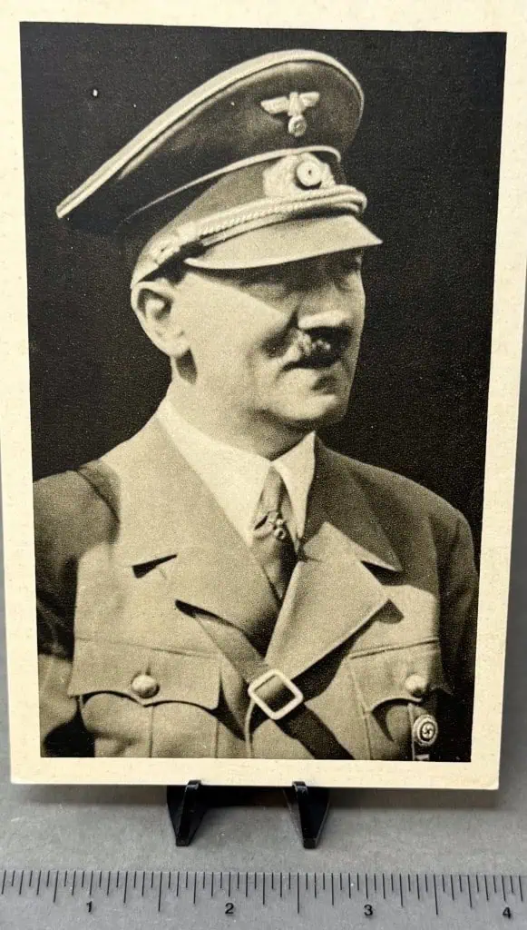 OUTSTANDING Early Adolf Hitler Photo Circa 1939 Certified By The Gettysburg Museum Of History. Printed on real photo paper (this is an actual photograph). Nice used example with the expected age with some storage wear. 100% Guaranteed to be authentic. Original period images of Hitler are rare, most were destroyed at the end of WWII. A very collectible size in excellent condition. photographer’s stamp on the back. We have several they all have various single stamps on the back. Complete museum documentation (COA) Provided. Certified by The Gettysburg Museum of History. The Gettysburg Museum of History does not support or condone Adolf Hitler or the Nazi Party and is only offering this as a historic relic. Please see our other items. Also note when browsing our web site there are several pages of items, at the bottom of the list look for other page numbers. EXCELLENT EXAMPLE (see photo)! Don’t Miss It! Striking image RARE!
