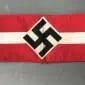 LARGE Original WWII Era German Nazi Party Flag Certified. A standard style large Cloth banner type flag. Utilized by pretty much by all the organization of the Third Reich in one form or another. The swastika, (a Sanskrit word meaning “well being”), is an ancient symbol that was utilized in numerous diverse cultures and signified both the cycle of life and the sun. The swastika was also a Nordic rune and the pagan Germanic symbol for Thor, God of Adventurers. In good condition DOUBLE sided large 31″/60″!!! standard cotton bunting style material with separate sewn white disk and HIGH QUALITY MULTI-PIECE swastika. We placed a helmet on the flag for size reference. A fantastic piece of WWII history . Has the original cloth loop for attaching to a pole. In good condition with Very minor storage wear no fading (see photos) Excellent condition, great but used! EXCELLENT ALMOST MINT CONDITION! This flag is A good quality version and one of the better sizes for the most discriminating and cultivated collector. Even with the minor condition issues it Overall a very collectible flag with lots of history Nice period used flag captured by a U.S. Veteran and brought home as a war trophy. Nice used example showing the expected age and wear. 100% Guaranteed to be authentic Brought home by a solider as a trophy of war. A very desirable size in good condition an outstanding example. Don’t miss this one! RARE in this size. Complete museum documentation (COA) Provided. Certified by The Gettysburg Museum of History. The Gettysburg Museum of History does not support or condone Adolf Hitler or the Nazi Party and is only offering this as a historic relic. Please see our other items. Also note when browsing our web site there are several pages of items, at the bottom of the list look for other page numbers. This is the type as seen in the photo with Hitler at the big rallies. RARE IN THIS SIZE. OUTSTANDING EXAMPLE! NSDAP FLAGS ARE GETTING TOUGHER TO FIND! Don’t Miss It!!!! RARE, Excellent (almost MINT) Condition!