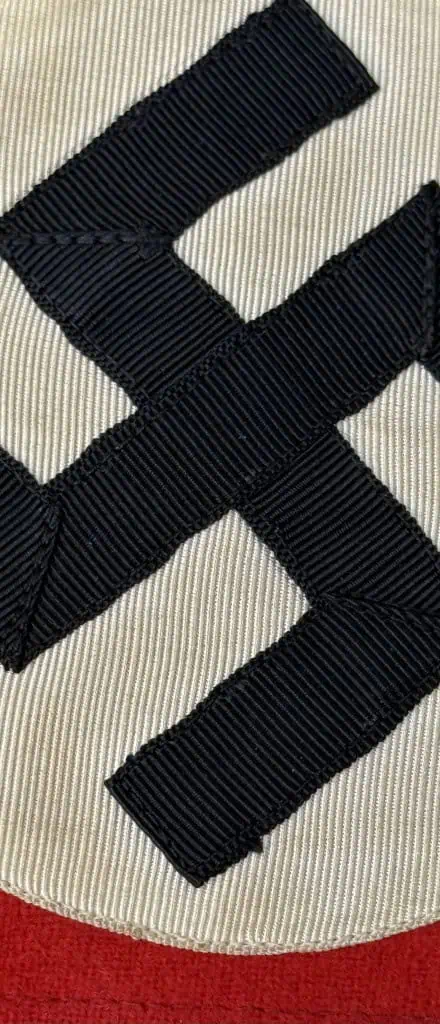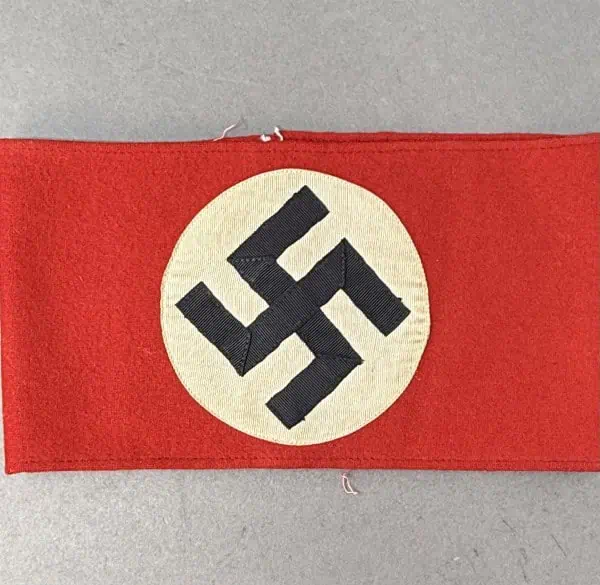 Original WWII Deluxe Nazi German Multi-Piece Construction Armband Brought Home By A U.S. Veteran. In excellent condition! Deluxe version of the Nazi Arm Band. The most recognizable pieces of insignia associated with the Nazi regime is the swastika armband. Utilized by pretty much by all the organization of the Third Reich in one form or another. The swastika, (a Sanskrit word meaning “well-being”), is an ancient symbol that was utilized in numerous diverse cultures and signified both the cycle of life and the sun. The swastika was also a Nordic rune and the pagan Germanic symbol for Thor, God of Adventurers. A high-quality wool cloth materiel, approximately 9cm diameter, rayon blend white disk, and high-quality multi-piece swastika. VERY high-quality example. A very good earlier example. Gettysburg Museum Certified (COA) provided. Rare 100% Guaranteed to be authentic. Brought home by a U.S Veteran as a trophy of war. Sold for historic purposes only. See our other pieces on our web site. Also note when browsing our web site there are several pages of items, at the bottom of the list look for other page numbers. Slight soiling on the white part and one small nip on the back otherwise almost mint. Do not miss this one! Nice one ALMOST MINT nice EXAMPLE.