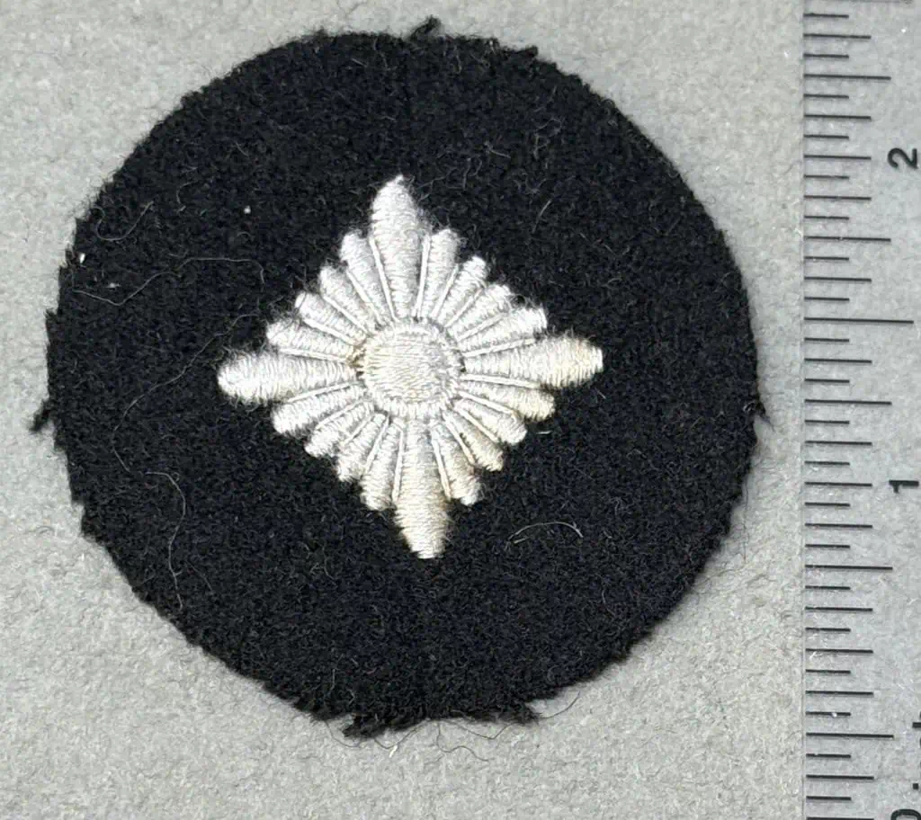 OUTSTANDING (ALMOST MINT) Original WWII Waffen SS-OBERSCHÜTZE’S RANK PIP. (Dienstgradabzeichen) Taken From Dachau By A U.S. Veteran Certified. On December 22ND 1920 the Weimar era Reichsheer instituted a system of sleeve rank insignia for enlisted personnel which remained in effect until the newly formed Wehrmacht Heer introduced a new system on September 25TH 1936. In March 1938 the Allgemeine-SS, (General-SS), adopted the army style rank pip for the rank of SS-Mann. In 1939 the Waffen-SS, (Armed-SS), began using the Allgemeine-SS army style rank pip for the rank of SS-Mann. In 1941 the Waffen-SS adopted the army rank of Oberschütze and utilized the earlier SS-Mann rank pip to identify this new rank. Of Note: Army regulations of April 25TH 1940 dictated the base color of the rank insignia was to match the color of the uniform being worn and as a result Panzer personnel also wore this rank pip. The SS-Oberschütze rank insignia consists of a roughly, 50mm diameter, black wool base with a central, machine embroidered, rank pip in silver/grey cotton threads. Nice used example showing the expected age and wear. almost mint . 100% Guaranteed to be authentic Brought home from Dachau Concentration Camp by a U.S. solider as a trophy of war. SS items are very collectible and difficult to find in good condition. Complete museum documentation (COA) Provided. Certified by The Gettysburg Museum of History. The Gettysburg Museum of History does not support or condone Adolf Hitler or the Nazi Party and is only offering this as a historic relic. Please see our other items. Also note when browsing our web site there are several pages of items, at the bottom of the list look for other page numbers. AUTHENTIC SS insignia Are ALMOST Impossible to get, this is the first one we have been able to get in a while! DON’T Miss It! THIS CAME FROM A Recent “Dachau Horde” we obtained!