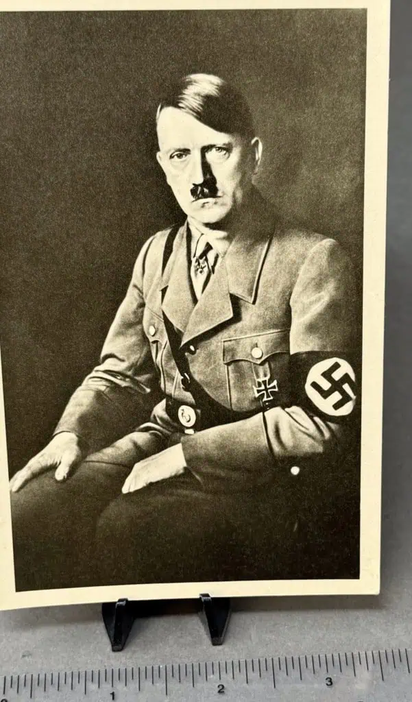 OUTSTANDING Early Adolf Hitler Photo Circa 1938 By Hoffman Certified By The Gettysburg Museum Of History. Hitler had Hoffman, his photographer, take a series of photos just after becoming the Chancellor of Germany in 1933. This is one of the choice early Hitler images and is one of the most desirable images. Printed on real photo paper (this is an actual photograph) off the original Hoffman negative in 1938. Nice used example with the expected age with some storage wear. 100% Guaranteed to be authentic. Original period images of Hitler are rare, most were destroyed at the end of WWII. A very collectible size in excellent condition. Heinrich Hoffman was Hitler’s personal photographer, and his photos are very collectible and desirable. Has Hoffman’s name and photographer’s stamp on the back. Complete museum documentation (COA) Provided. Certified by The Gettysburg Museum of History. The Gettysburg Museum of History does not support or condone Adolf Hitler or the Nazi Party and is only offering this as a historic relic. Please see our other items. Also note when browsing our web site there are several pages of items, at the bottom of the list look for other page numbers. EXCELLENT EXAMPLE (see photo)! Don’t Miss It! Striking image VERY RARE IMAGE!