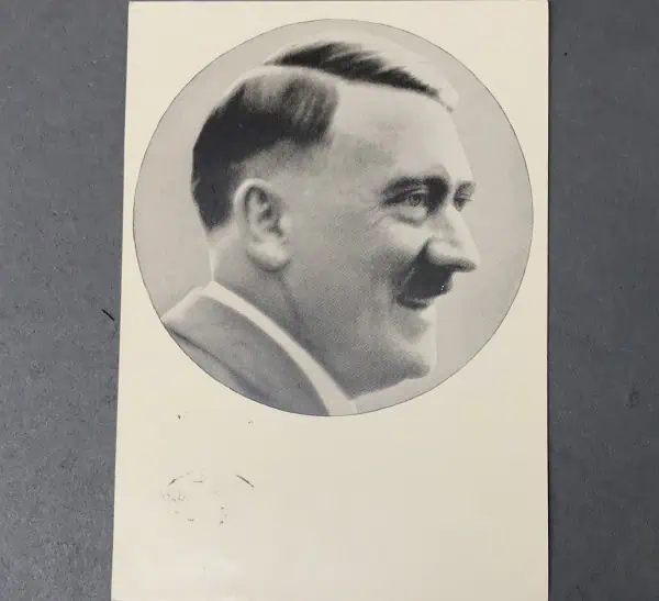 OUTSTANDING Early Adolf Hitler Photo Circa 1938 Certified By The Gettysburg Museum Of History. Many photos were taken of Hitler just after becoming the Chancellor of Germany in 1933. This is one of the choice early Hitler images and is one of the most desirable images. Printed on real photo paper (this is an actual photograph) off the original negative in 1938. Nice used example with the expected age with some storage wear. 100% Guaranteed to be authentic. Original period images of Hitler are rare, most were destroyed at the end of WWII. A very collectible size in excellent condition. Hitler original photos are very collectible and desirable. Has photographer’s stamp on the back. Complete museum documentation (COA) Provided. Certified by The Gettysburg Museum of History. The Gettysburg Museum of History does not support or condone Adolf Hitler or the Nazi Party and is only offering this as a historic relic. Please see our other items. Also note when browsing our web site there are several pages of items, at the bottom of the list look for other page numbers. EXCELLENT EXAMPLES some might have slight transfer contact from the stamp on the back (see photo)! These are several examples and one will be selected for you, and it may not match the example photo exactly. All similar in likeness and condition. Good contrast right off negative! Don’t Miss It! Striking image RARE!
