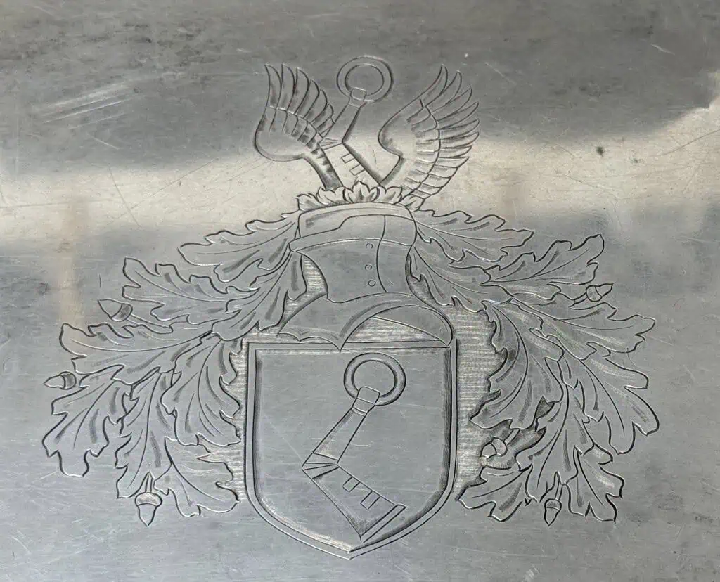 OUTSTANDING Herman Goering’s Personally Owned/Used Silver TEA SET Tray Recovered By A U.S. Soldier Certified. A silver tray with Herman Goering’s Personal family coat of arms crest. This is the pattern that is attributed to his home on the Obersalzberg near Berchtesgaden. This house was damaged by Allied bombers just before the it was captured by U.S. and French forces in May 1945. Most of this pattern of Goering silver is attributed to 101st Airborne soldiers but the exact Veteran who took this was not documented. The exquisite hand engraving is outstanding . About 17″ long and 12″ high 100% Guaranteed to be authentic Brought home by a U.S. solider as a trophy of war. Complete museum documentation (COA) Provided. Certified by The Gettysburg Museum of History. Ex. Dr, Mark Griffith collection who wrote 2 books on Third Reich silver. The Gettysburg Museum of History does not support or condone Adolf Hitler, Herman Goering, or the Nazi Party and is only offering this as a historic relic. Please see our other items. Also note when browsing our web site there are several pages of items, at the bottom of the list look for other page numbers. DON’T MISS THIS! OUTSTANDING EXAMPLE! See our video on Herman Goering recovered items. THE BEST Goering Tray we have seen! For the Tea Set! AMAZING! IF YOU WANT THE BEST, THIS IS IT!