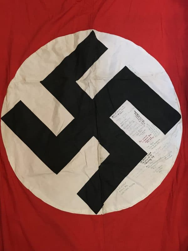 OUTSTANDING LARGE WWII German NSDAP (NAZI PARTY) Maker Marked Flag Signed By The U.S. Soldier’s Who Captured It Certified