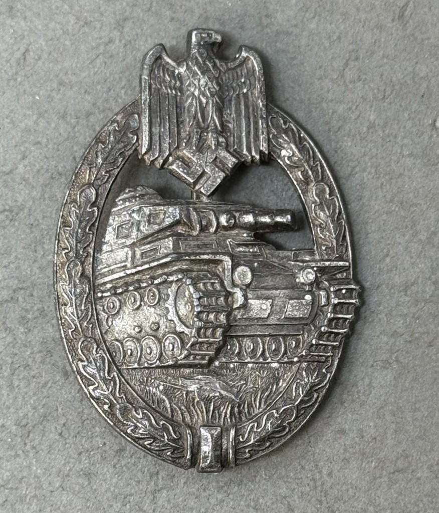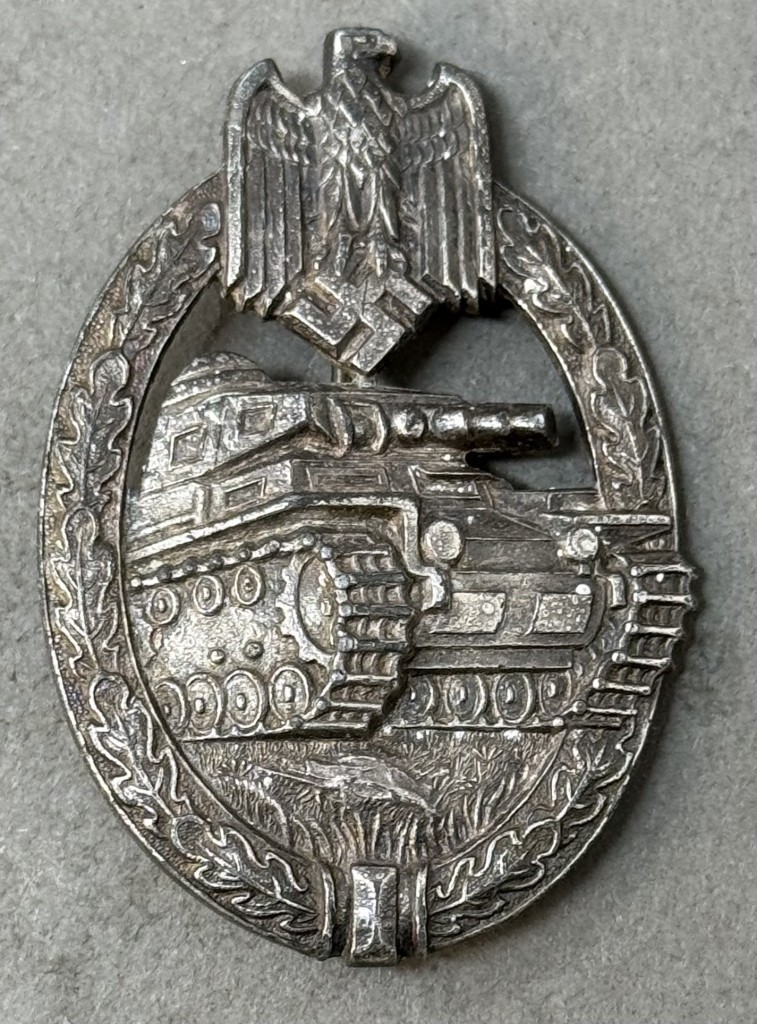 OUTSTANDING MAKER MARKED Original WWII German Army (Heer)/SS PANZER ASSAULT BADGE, IN SILVER. (Panzerkampfabzeichen In Silber) Certified