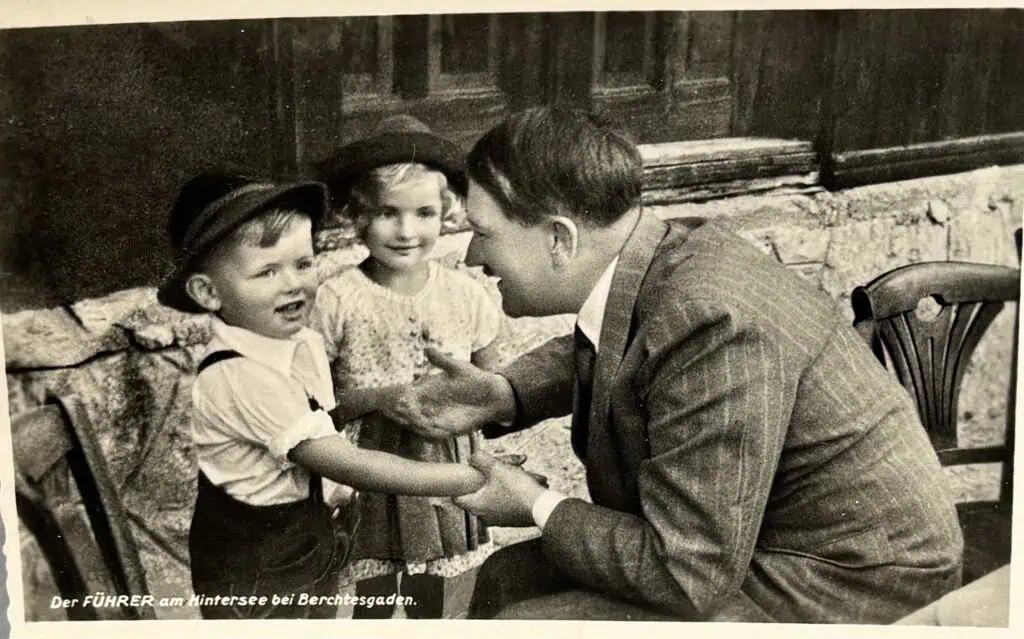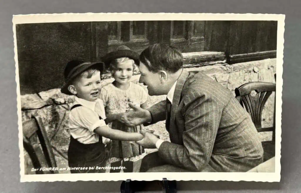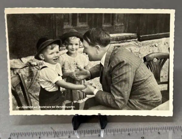 Outstanding Original Classic Adolf Hitler Photo Postcard With Youth By Hoffman Circa 1930’s Certified By The Gettysburg Museum Of History