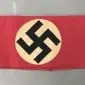 LARGE Original WWII Era German Nazi Party Flag Certified. A standard style large Cloth banner type flag. Utilized by pretty much by all the organization of the Third Reich in one form or another. The swastika, (a Sanskrit word meaning “well-being”), is an ancient symbol that was utilized in numerous diverse cultures and signified both the cycle of life and the sun. The swastika was also a Nordic rune and the pagan Germanic symbol for Thor, God of Adventurers. In good but used condition DOUBLE sided large 55″/153″!!!! standard cotton bunting style material with separate sewn white disk and a screened swastika. We placed a helmet on the flag for size reference. A fantastic piece of WWII history. Has the original cloth loop for attaching to a pole. In good condition with Very minor storage wear (see photos) good condition, great but used! GOOD BUT USED CONDITION some slight tears and staining no fading. This flag is a good quality version and one of the better sizes for the most discriminating and cultivated collector. Even with the minor condition issues it is overall a very collectible flag with lots of history. Nice period used flag captured by a U.S. Veteran and brought home as a war trophy. Nice used example showing the expected age and wear. 100% Guaranteed to be authentic Brought home by a solider as a trophy of war. A very desirable size in good condition an outstanding example. Don’t miss this one! RARE in this size. Complete museum documentation (COA) Provided. Certified by The Gettysburg Museum of History. The Gettysburg Museum of History does not support or condone Adolf Hitler or the Nazi Party and is only offering this as a historic relic. Please see our other items. Also note when browsing our web site there are several pages of items, at the bottom of the list look for other page numbers. RARE IN THIS SIZE. OUTSTANDING EXAMPLE! NSDAP FLAGS ARE GETTING TOUGHER TO FIND! Don’t Miss It!!!! RARE, GOOD BUT WELL USED Condition! See photos.