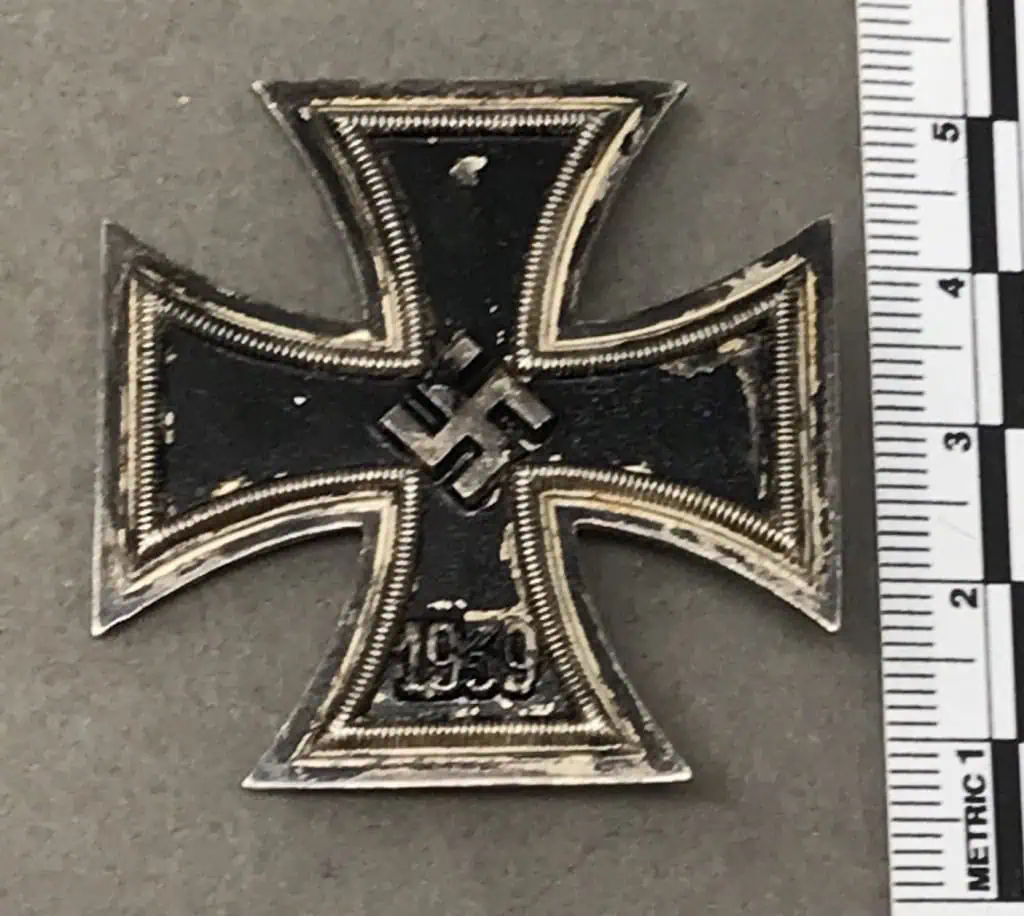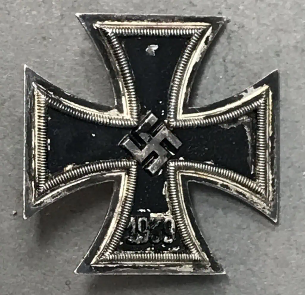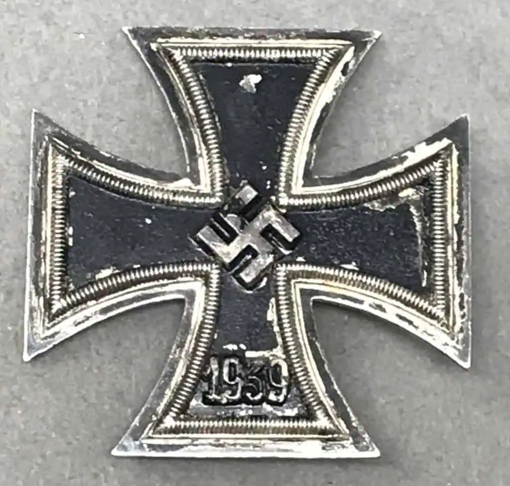 Original WWII German 1939 IRON CROSS 1ST CLASS, 1939. (Eisernes Kreuz I Klasse) Certified. On March 10TH 1813, Prussian King Friedrich Wilhelm III established the Iron Cross as a temporary award for bestowal during times of war. Originally the Iron Cross was introduced in three grades with a Grand Cross intended for award to Senior Commanders for successfully leading troops in combat and the First and Second classes for award to all ranks for bravery or merit in action. The Iron Crosses were re-instituted by King Wilhelm I on July 19TH 1870 for award during the Franco-Prussian War and again on August 5TH 1914 by King Wilhelm II for award during WWI. On September 1ST 1939 Hitler once more re-instituted the Iron Cross series of awards in the First and Second Classes and established the Knight’s Cross of the Iron Cross. The first-class medal was for award to personnel who performed three to five acts of bravery in combat and had already been awarded the Iron Cross 2ND class. Die struck, three-piece, iron and nickel/silver plated alloy construction Patté style cross with a single piece High Quality TOMBAK core and a two-piece alloy frame. The obverse of the award features an embossed, central, canted swastika with the re-institution date, “1939”, to the bottom arm. The swastika is in nice high relief while the date is somewhat lower. With working pinback. In overall good condition with minor storage wear and paint loss to the medal, see photos. 100% Guaranteed to be authentic, Gettysburg Museum Certified (COA) provided. A VERY NICE EXAMPLE! Good used condition! Don’t miss this! Great looking Iron Cross, one of the classic German Medals!