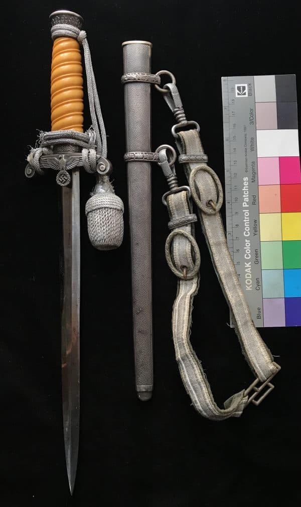 OUTSTANDING Original WWII German Army (Heer) OFFICER’S DAGGER. WITH ORIGINAL HANGERS AND PORTEPEE (Heer Offizierdolch) By Eichhorn Brought Home By A U.S. Veteran Certified.