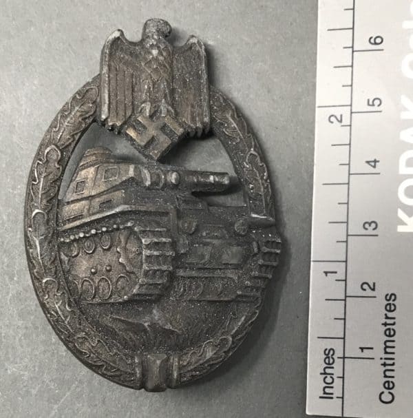 OUTSTANDING Original WWII German Army (Heer)/SS MAKER MARKED PANZER ASSAULT BADGE, IN BRONZE (Panzerkampfabzeichen in Bronze) Certified
