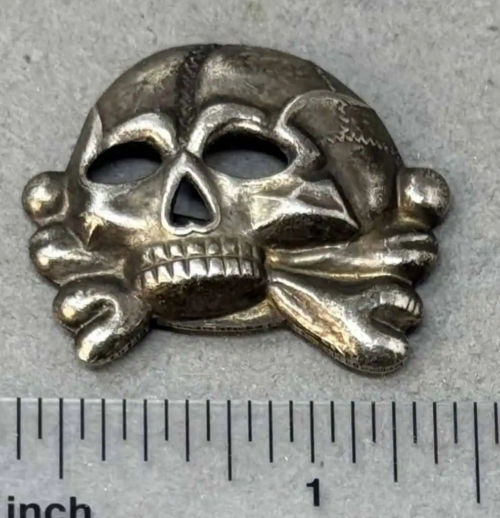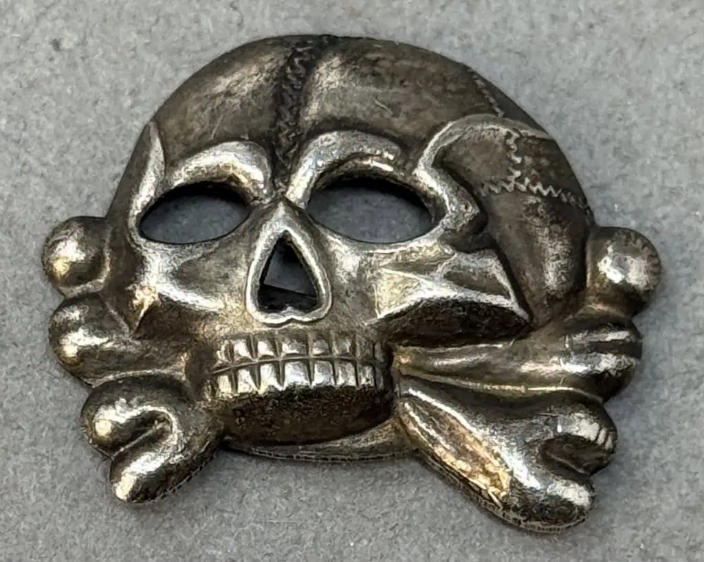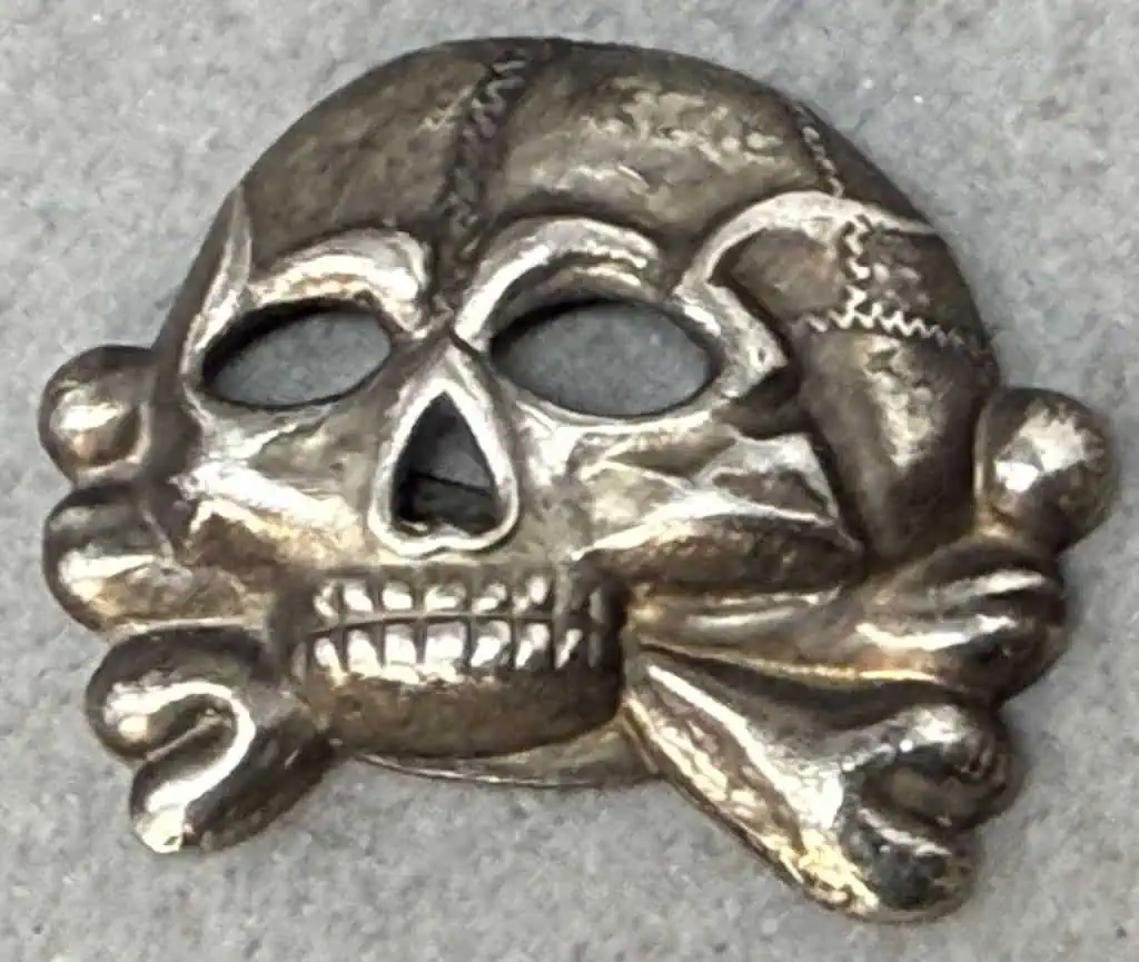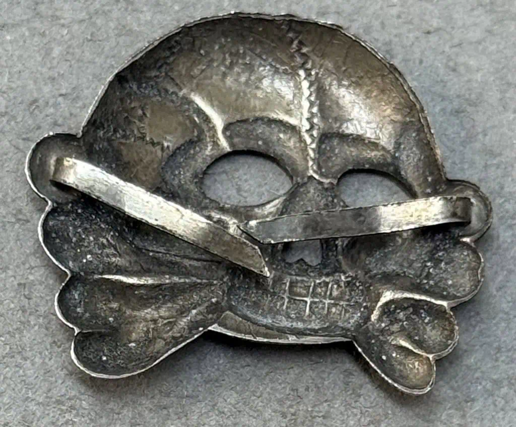 OUTSTANDING Original Third Reich German Early SS Visor Cap Skull (Schirmmütze Totenkopf) Certified By The Gettysburg Museum Of History. The Allgemeine-SS, (General-SS), was originally formed in May 1923 as the Stosstrupp Adolf Hitler (Shock Troops Adolf Hitler), and was redesignated Schutzstaffel, (Protection Squad), in April 1925 with the official acceptance of the name verified on the second anniversary of the failed Munich “Beer-Hall” Putsch on November 9TH 1925. On January 6TH 1929 Heinrich Himmler was appointed as Reichsführer-SS, (National Leader {of the} SS), and on July 20TH 1934 shortly after the, June 30TH 1934, purge of the SA ,Sturm Abteilung, (Storm Troopers), on the “Night of the Long Knives”, the SS was rewarded by Hitler by being granted the status of an independent organization under direct control of the NSDAP, Nationalsozialistische Deutsche Arbeiterpartei, (National Socialist German Worker’s Party). Originally members of the fledgling SS had no official uniform or headgear until April 1925 when they adopted, what was to become known as the, “Tradition Uniform” and personnel were outfitted with the same brown shirt uniform and kepi as the SA,. In 1923 the Stabswache (Headquarter Guards), was the first SS unit to adopt the old Imperial Danziger style Totenkopf, (Death’s Head), to be worn on their headgear. The Danziger style Totenkopf can be traced back to at least the early 1800’s when it was utilized on the busby style caps of the 1ST and 2ND Prussian Leib-Husaren Regiments. In November 1925 personnel of the newly formed SS adopted a black Kepi to distinguish them from their SA counterparts and in 1927 the SS were the first to adopted the national eagle insignia for wear on their headgear. In 1932, the first black SS service visor caps were introduced for wear to replace the kepi as the standard headgear for all ranks. Originally, SS personnel wore the Danziger style skull and the political 1927 pattern national eagle on their visor caps. In an attempt to distance themselves from the SA, the SS introduced a new pattern cap skull to replace the previously used Danziger style skull on October 6TH 1934 and in February 1936 a new SS pattern national cap eagle was introduced. Both these pieces of insignia were worn through-out the war. Of Note: The RZM, Reichzeugmeisterei, (National Equipment Quartermaster), was official founded in June 1934 in Munich by the NSDAP as a Reich Hauptamt, (State Central Office), and was based on the earlier SA Quartermaster’s Department. The functions of the RZM were not only to procure and distribute items to Party formations, but also to approve chosen designs and to act as a quality control supervisor to ensure items manufactured for the Party met required specification and were standardized. Starting in late 1934 items manufactured for the SS came under the quality control of the RZM and were marked with a RZM/SS approval/acceptance mark. In 1943 the Waffen-SS assumed full control over their uniform item production and no longer fell under the authority of the RZM. First pattern, (Circa 1923-1934), silver washed, stamped alloy construction Imperial Prussian Danziger style skull, with no bottom jaw, superimposed over crossed bones. The skull features two rows of teeth, oval eye cut-outs, a triangular nose cut-out and embossed cranium detailing. The hollow backed reverse is a mirror image of the obverse and has both of the two original soldered attachment prongs intact. 100% guaranteed to be authentic with Museum COA (Certificate Of Authenticity). This SS Skull is one of the most desirable and iconic artifacts from the Third Reich. DO NOT MISS THIS! OUTSTANDING EXAMPLE! SS Items are RARE and desirable to collectors and historians! Shows use, cap removed! Has some of the silver wash still present VERY NICE!