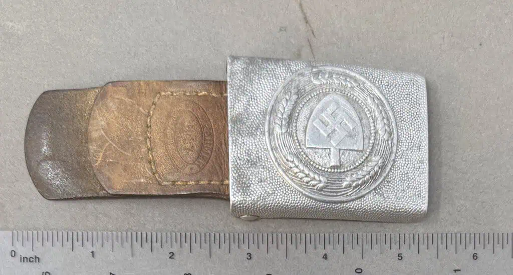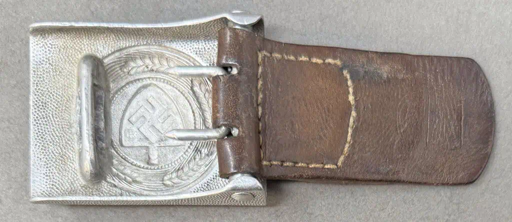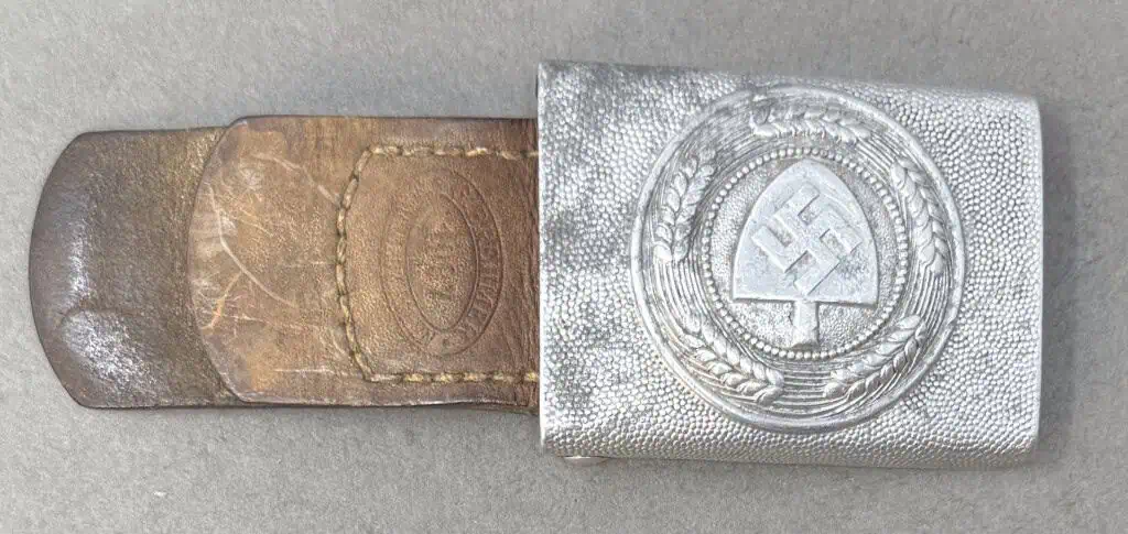OUTSTANDING Original WWII German RAD EM/NCO’S BELT BUCKLE. (Koppelschloß) WITH MAKER MARKED LEATHER TAB Certified