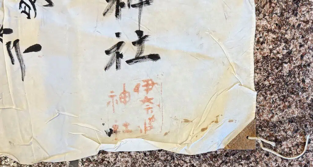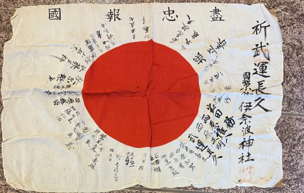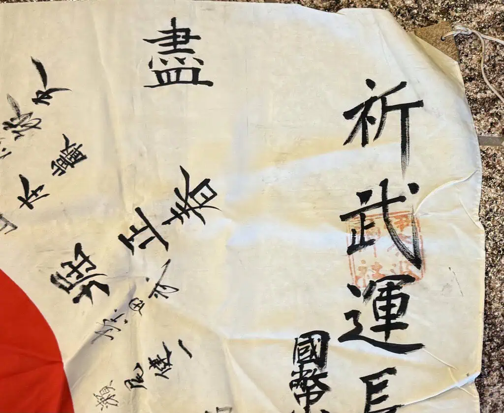OUTSTANDING Original WWII Japanese NATIONAL FLAG WITH KANJI And Temple Stamp Brought Home By A U.S. Veteran Certified