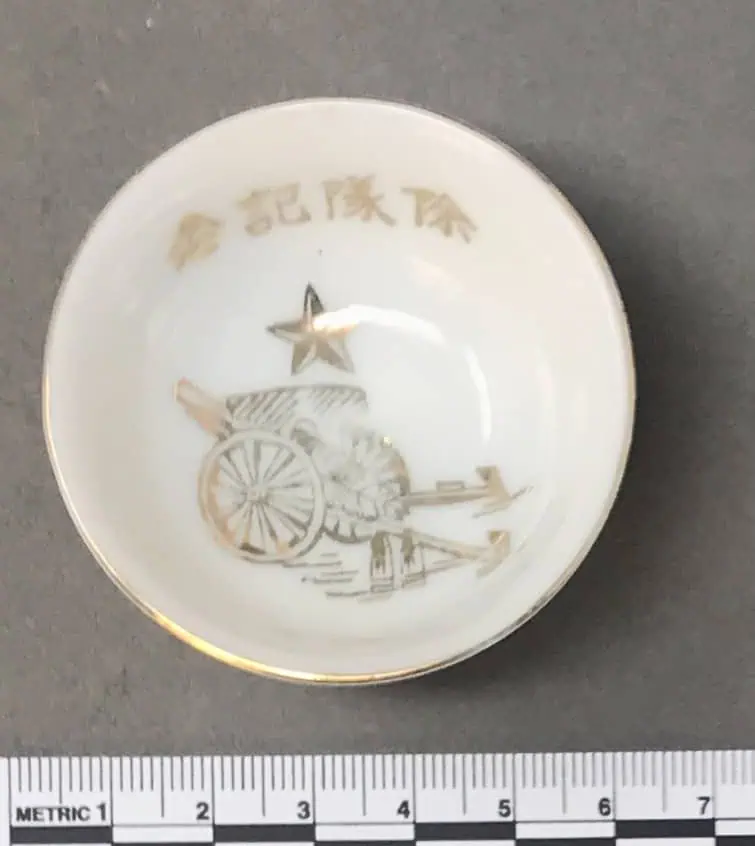 OUTSTANDING Original WWII Japanese Sake Cup With Patriotic Military Artillery Cannon Certified