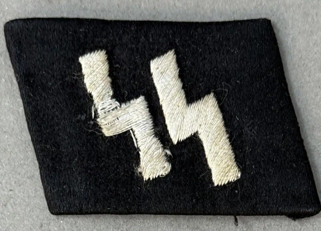 OUTSTANDING Original WWII Waffen SS Collar Tab With Partial RZM Tag Brought Home By A U.S. Veteran Certified By The Gettysburg Museum Of History. The Allgemeine-SS, (General-SS), was originally formed in May 1923 as the Stosstrupp Adolf Hitler (Shock Troops Adolf Hitler), and was redesignated Schutzstaffel, (Protection Squad), in April 1925 with the official acceptance of the name verified on the second anniversary of the failed Munich “Beer-Hall” Putsch on November 9TH 1925. On January 6TH 1929 Heinrich Himmler was appointed as Reichsführer-SS, (National Leader of the SS). A fantastic 100% authentic Waffen SS Right hand side, third and final pattern, (Circa 1940-1945), un-piped, black ribbed rayon construction collar tab CUT OFF BY A U.S. Solider. With part of it’s original paper RZM tag on the back showing the expected age and wear. 100% Guaranteed to be authentic cut off and Brought home by a U.S. solider as a trophy of war. SS items are very collectible and difficult to find in good condition. Complete museum documentation (COA) Provided. Certified by The Gettysburg Museum of History. The Gettysburg Museum of History does not support or condone Adolf Hitler or the Nazi Party and is only offering this as a historic relic. Please see our other items. Also note when browsing our web site there are several pages of items, at the bottom of the list look for other page numbers. DON’T Miss It! See our video on SS cut offs! don’t miss this RARE Opportunity!