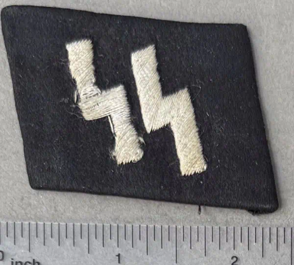 OUTSTANDING Original WWII Waffen SS Collar Tab Cut Off A Uniform By A U.S. Veteran With Partial RZM Tag Certified By The Gettysburg Museum Of History