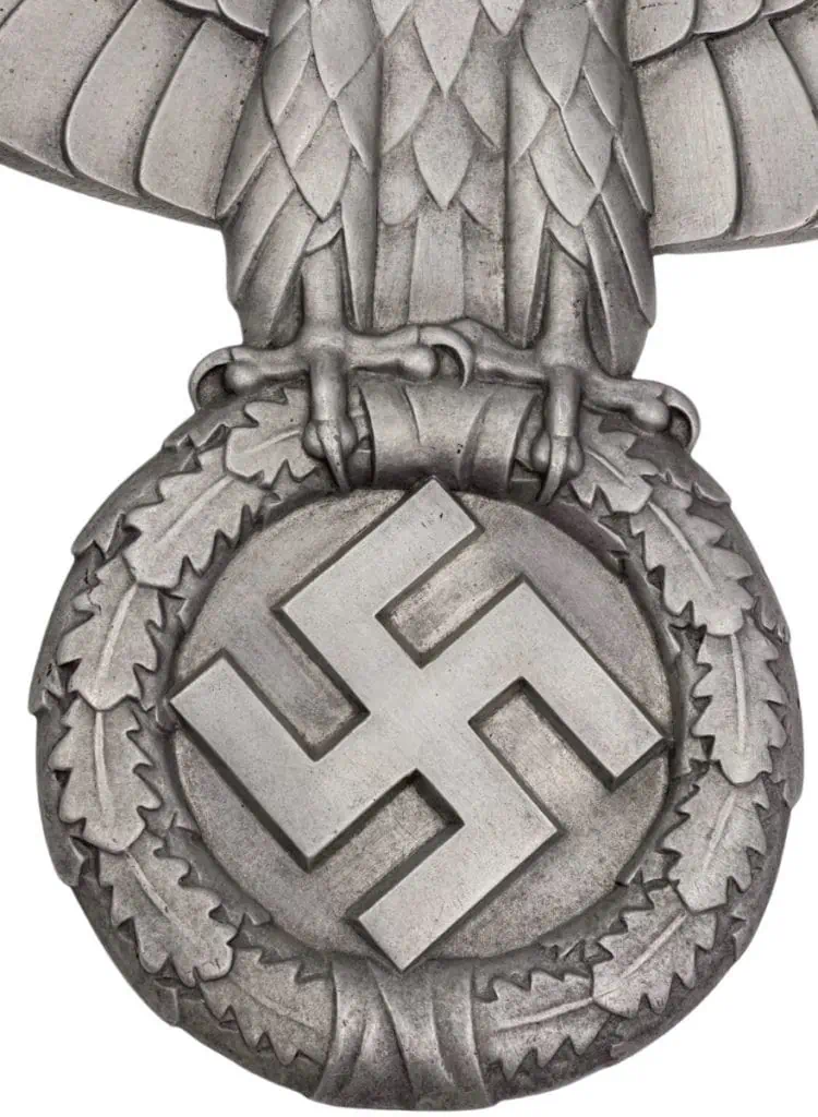 Original WWII German Railroad Eagle Removed From A Train Car By A U.S. Veteran Certified. This is in good used condition totally genuine German World War Two railroad eagle used to attach to the front of locomotives and box cars during the reign of the Third Reich. It measures 36″ inches across and 13 inches tall which is the biggest of all the eagles! This was the type found on the engine of the locomotive (see last photo) The threaded mounting bolts marks remaining (see photos). The reverse is marked in the center of the eagle and as well as the early style maker mark. in good condition, still shows sharp details. The eagle is photographed next to a standard train eagle to show how dramatically bigger it is! Do not get fooled by the many replicas being offered. This is a 100% Museum certified ORIGINAL Eagle that was taken off a train engine by a U.S. Veteran. This is a “one looker” as we say! Some wear from use otherwise in good condition with minor storage wear and some slight loss to one of the bolts threading from being pulled off the train (see photos). A rare U.S. Veteran bring back. 100% guaranteed to be authentic. Gettysburg Museum Certified (COA) provided. Please see our other items on our web site. DON’T MISS THIS! One of the truly desirable Third Reich Artifacts! Get this nice one while you can the prices on these keeps soaring! Several of you have been asking us to list a 36″ Engine Railroad Train Eagle so here you go! THIS IS THE BEST AND LARGEST WE EVER HAD! These are MEGA RARE about 20% more rare than a standard 27″ eagle! The first one we had for sale!