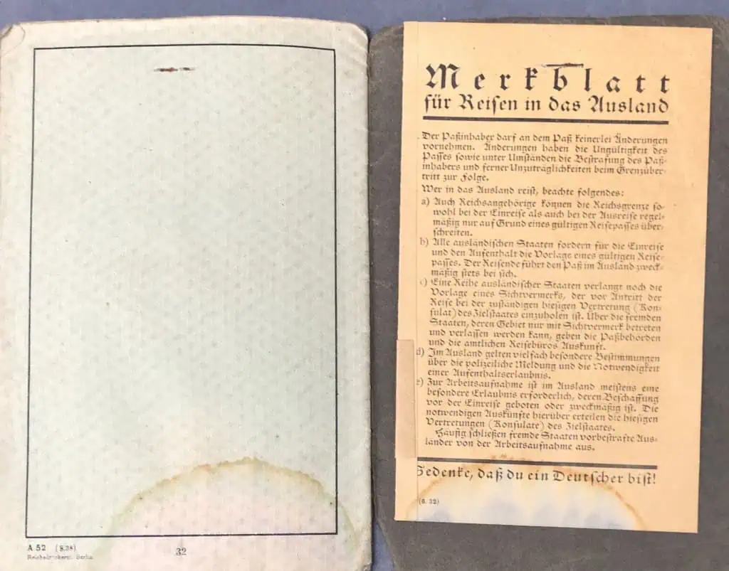 PAPERS PLEASE! A Third Reich Era NSDAP (NAZI) War Time Passport Document Certified By The Gettysburg Museum Of History